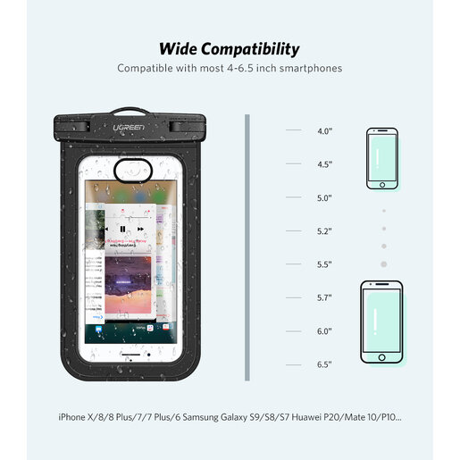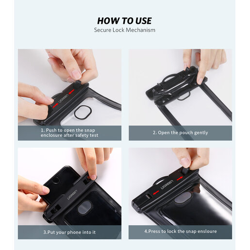 Чехол UGREEN водонепроницаемый для телефона черный/прозрачный 50919