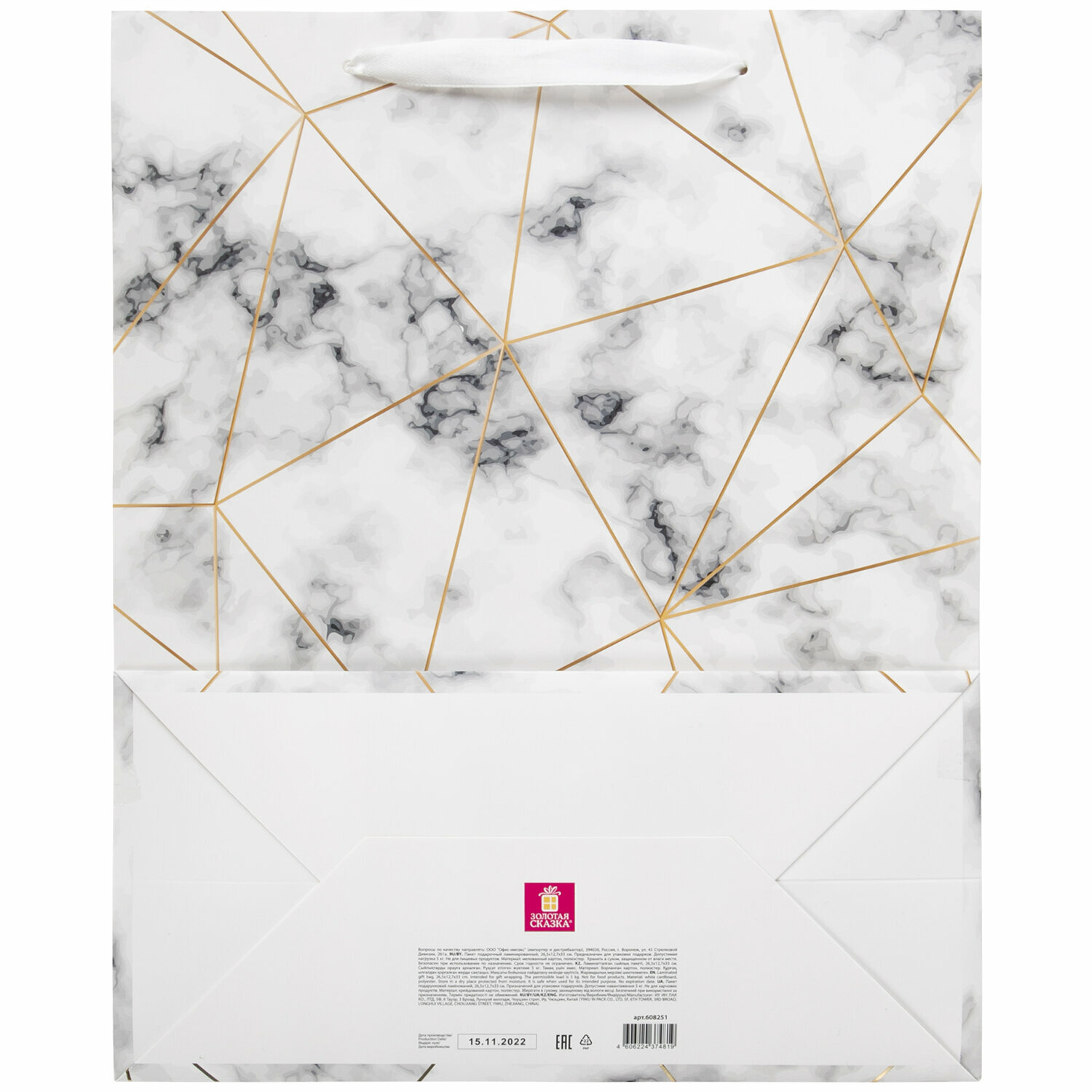 пакет подарочный ЗОЛОТАЯ СКАЗКА Golden Marble 265x127x33см 608251 (размер: 33х26,8х0,4)