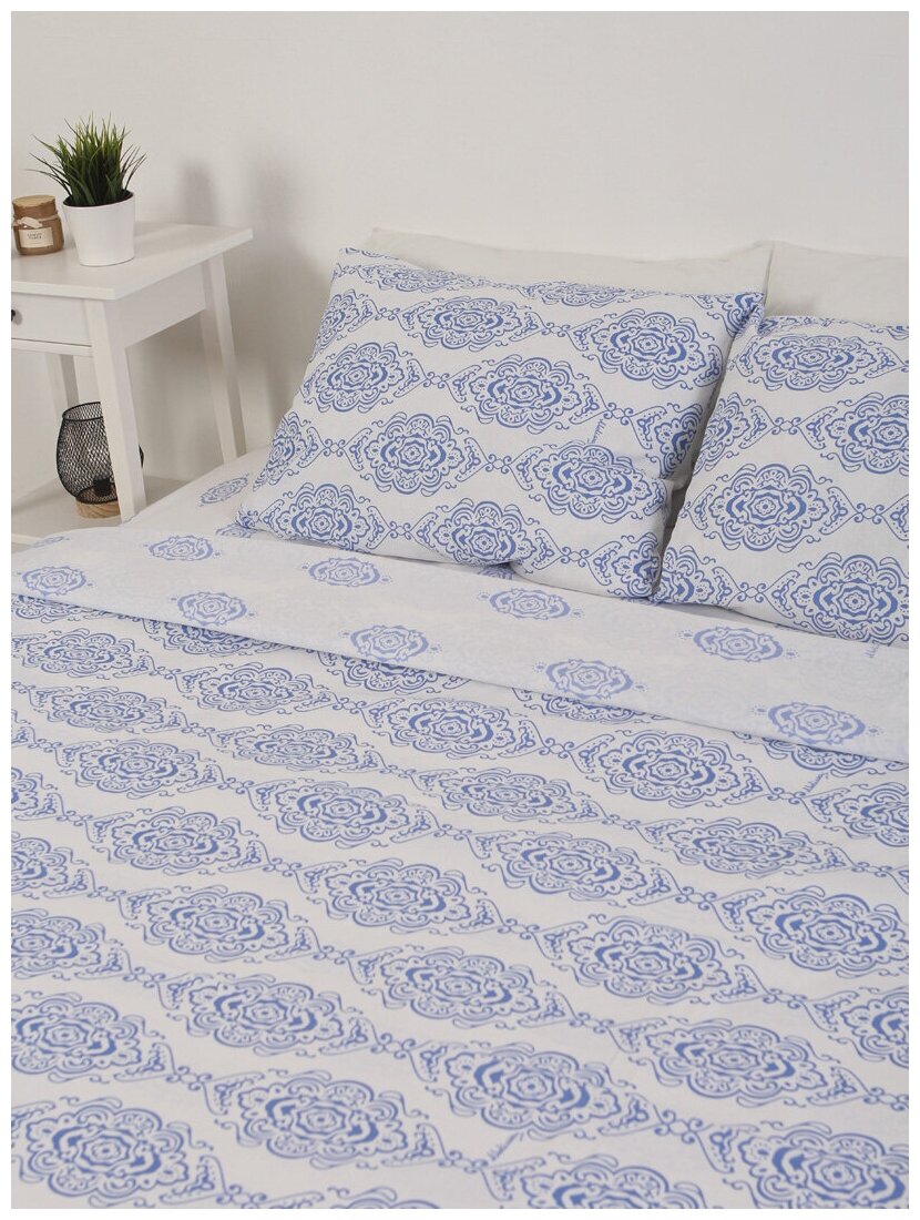 Комплект постельного белья выполнен из евробязи плотностью 120 гр/м2. Состав ткани 100% хлопок. Комплект состоит из пододеяльника 200*220 (1шт), простыни 200*215 (1шт), наволочек 70*70 (2шт). Вход в пододеяльник выполнен в виде планки. Упаковка "книжка" с цветной фотовкладкой.