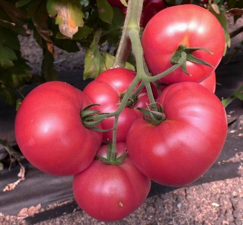среднеспелый (65-70 дней от высадки рассады) гибрид с очень высоким потенциалом урожая. Для выращивания в открытом грунте. Растение детерминантного типа. Отличается мощным стрессоустойчивым растением, легко приспосабливающимся к разным условиям выращивания. Лист средней длины, зелёной окраски. Соцветие простое. Плоды насыщенно - розовой окраски, плоскоокруглой формы, плотные, гладкий, обладают отличными вкусовыми качествами. Масса плода - 220-250 г. Сохраняет однородный размер в течении всего периода вегетации. Плоды обладают хорошей транспортабельностью и длительной послеуборочной сохранностью. Благодаря высокой устойчивости к растрескиванию гибрид обеспечивает высокий выход товарной продукции.
