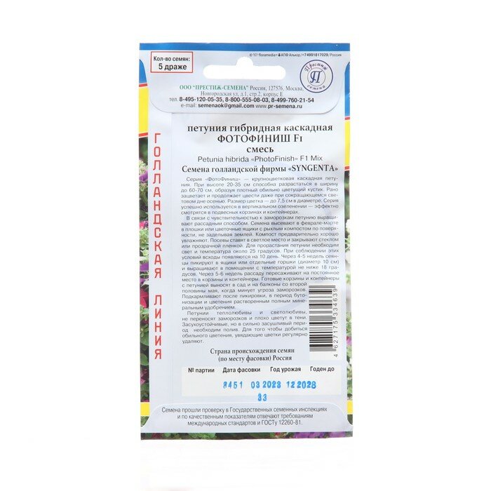 Сервис сравнения цен СкидкаГИД предлагает сравнить цены на товар «Семена цветов Престиж петуния каскадная Фотофиниш микс F1 5 шт. ПРЕСТИЖ СЕМЕНА»