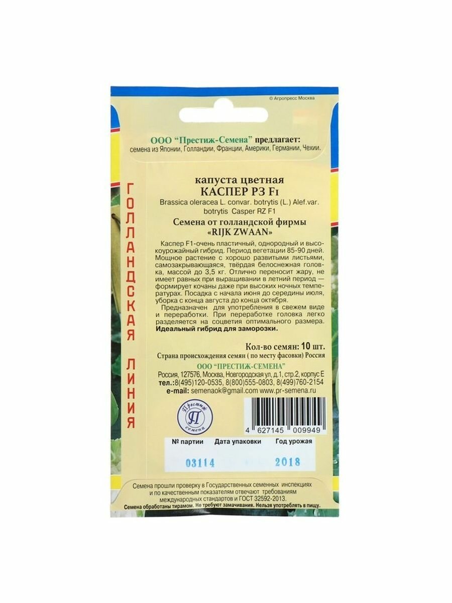 Семена овощей Престиж капуста цветная Каспер F1 ПРЕСТИЖ СЕМЕНА