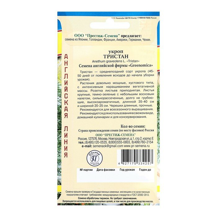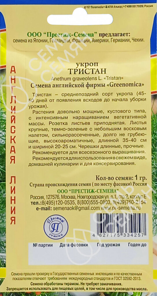 Семена пряных трав Престиж укроп Тристан ПРЕСТИЖ СЕМЕНА