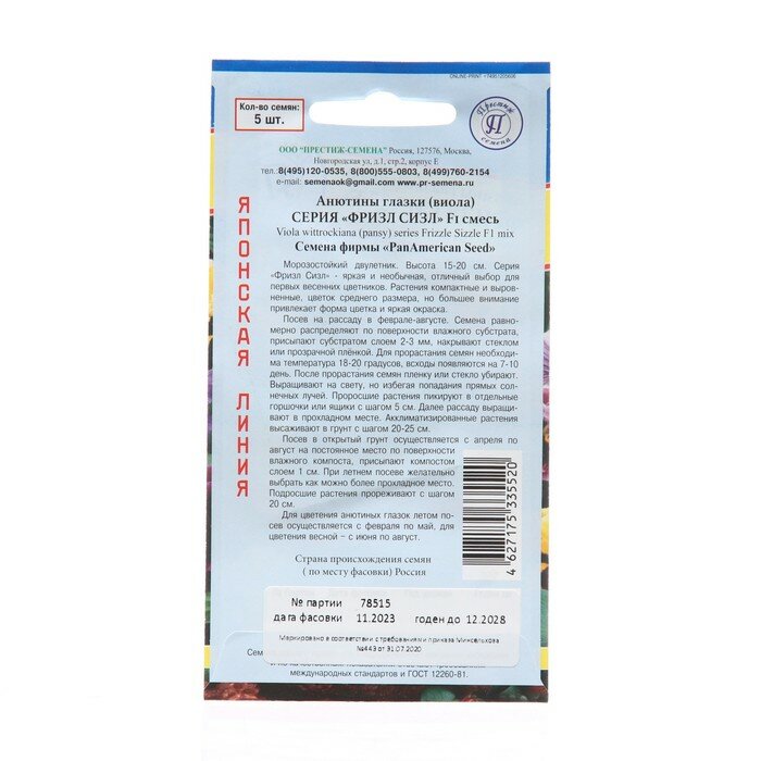 На сегодняшний день товар «Семена цветов Престиж анютины глазки витторка Фризл Сизл микс 5 шт. ПРЕСТИЖ СЕМЕНА» можно купить с кешбеком в 1 магазине: Яндекс.Маркет