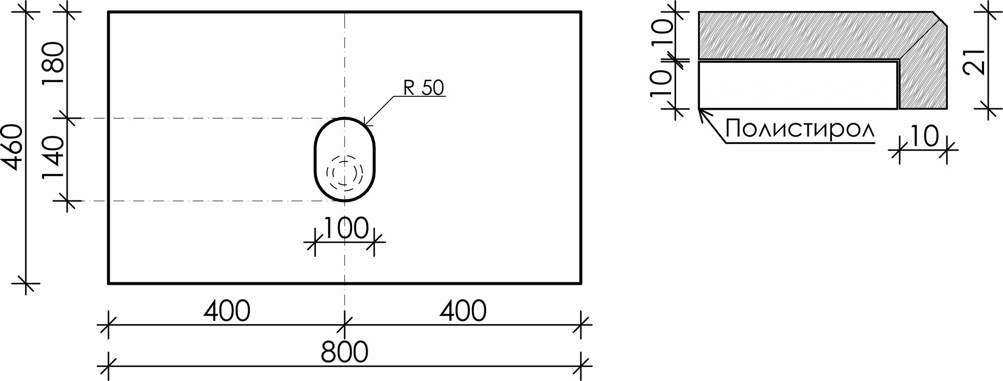 - Размеры (ШхВхГ): 800х21х460 мм.