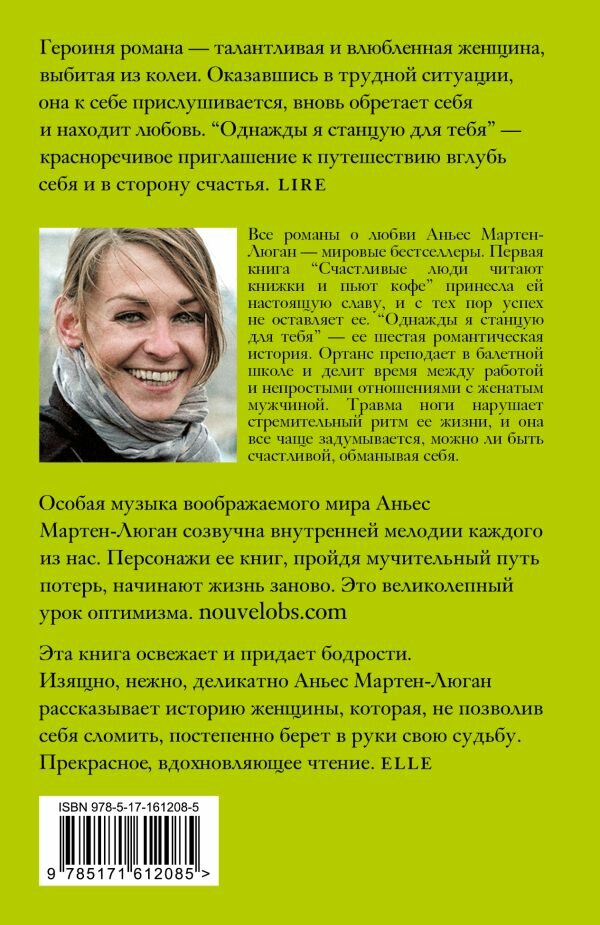 Аньес Мартен-Люган — автор мировых бестселлеров о любви, в том числе нашумевшего романа “Счастливые люди читают книжки и пьют кофе”, который сделал ее знаменитой. Книги Мартен-Люган переведены почти на сорок языков, в одной только Франции продажи превысили два миллиона экземпляров.