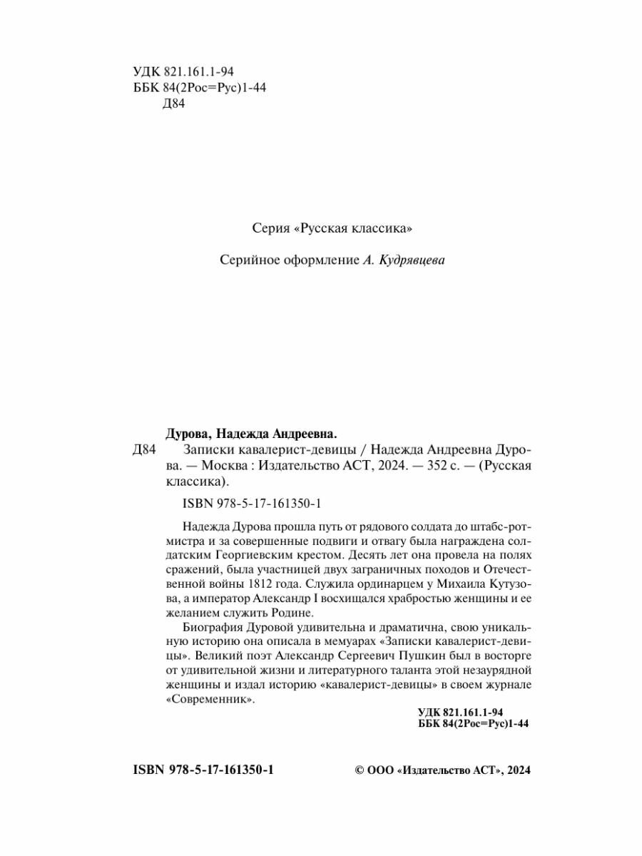 Записки кавалерист-девицы (Надежда Дурова); АСТ, Neoclassic, 2024