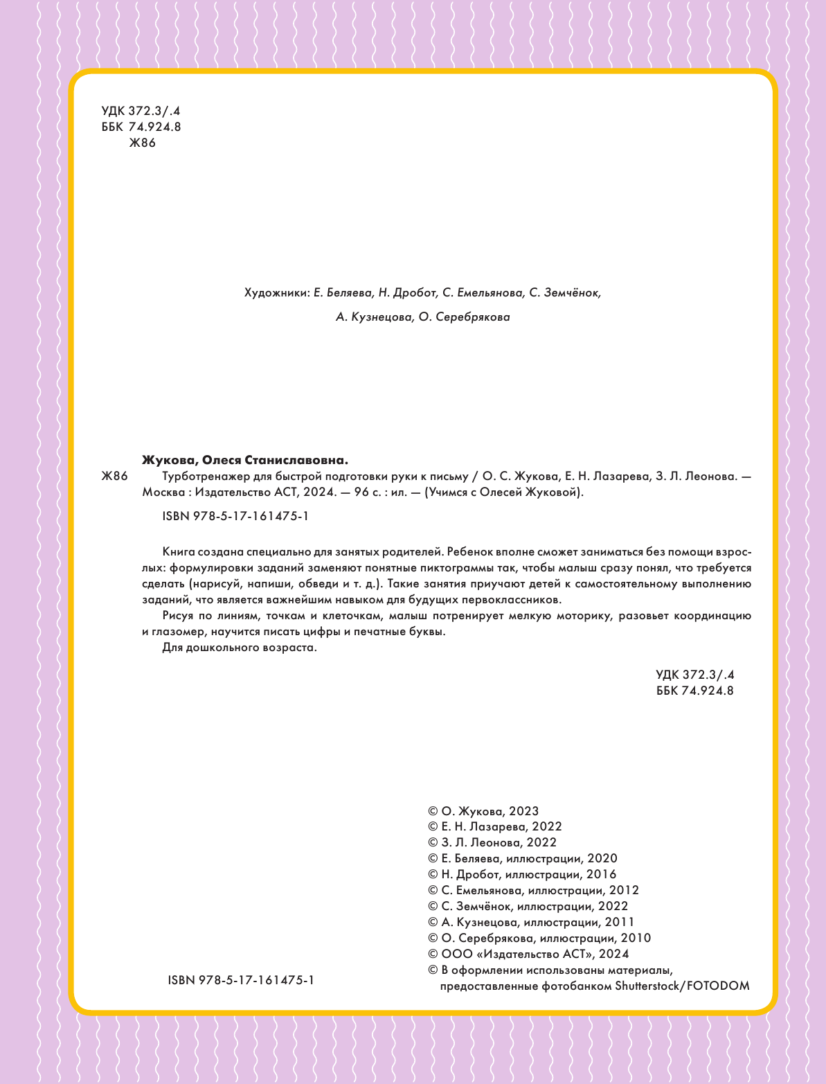Турботренажер для быстрой подготовки руки к письму (Жукова Олеся Станиславовна, Лазарева Елена Николаевна, Леонова Зоя Леонидовна); Малыш, 2024