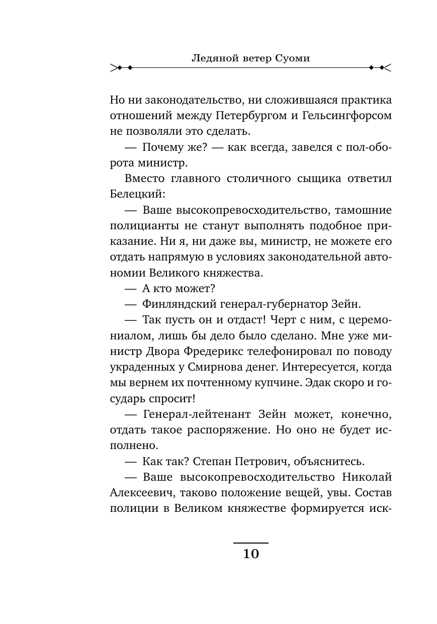 Немудрено, что кассир крупного банка, уроженец Финляндии Раутапяя, воспользовался таким удобным случаем. До финской границы — всего ничего. А там, в продуваемом ледяными ветрами Гелсингфорсе, российская полиция бессильна. И всем заправляют местные блюстители порядка, для которых распоряжения имперских властей — пустой звук. Используя подложные документы, господин Раутапяя похитил почти триста тысяч рублей и был таков...
