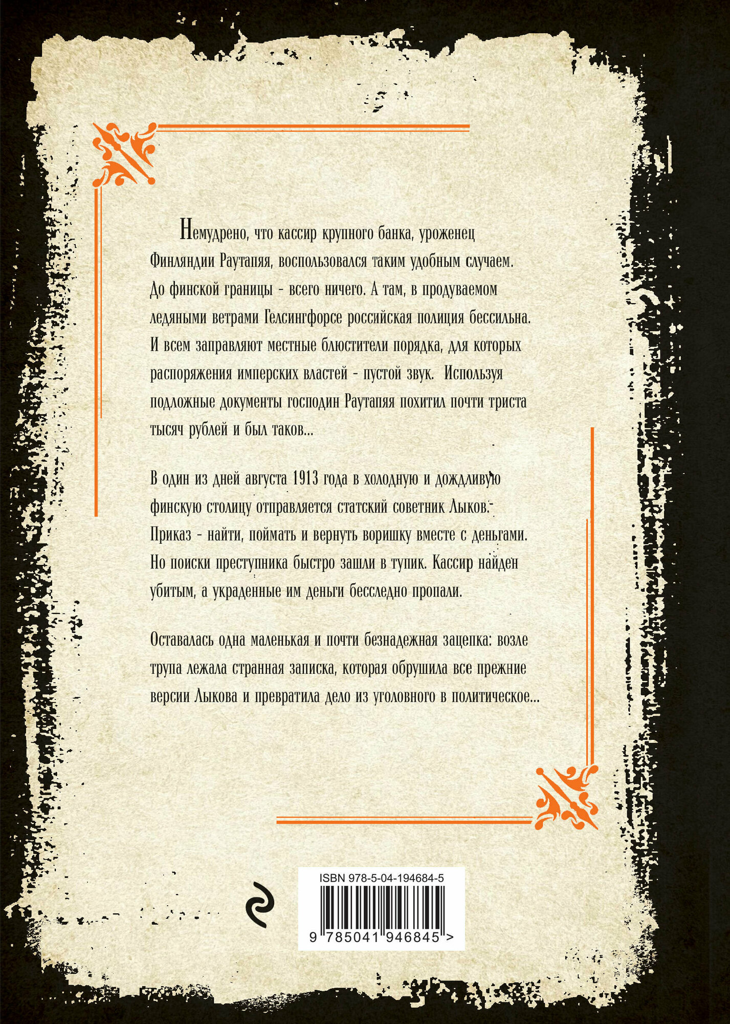 В один из дней августа 1913 года в холодную и дождливую финскую столицу отправляется статский советник Лыков. Приказ — найти, поймать и вернуть воришку вместе с деньгами. Но поиски преступника быстро зашли в тупик. Кассир найден убитым, а украденные им деньги бесследно пропали.