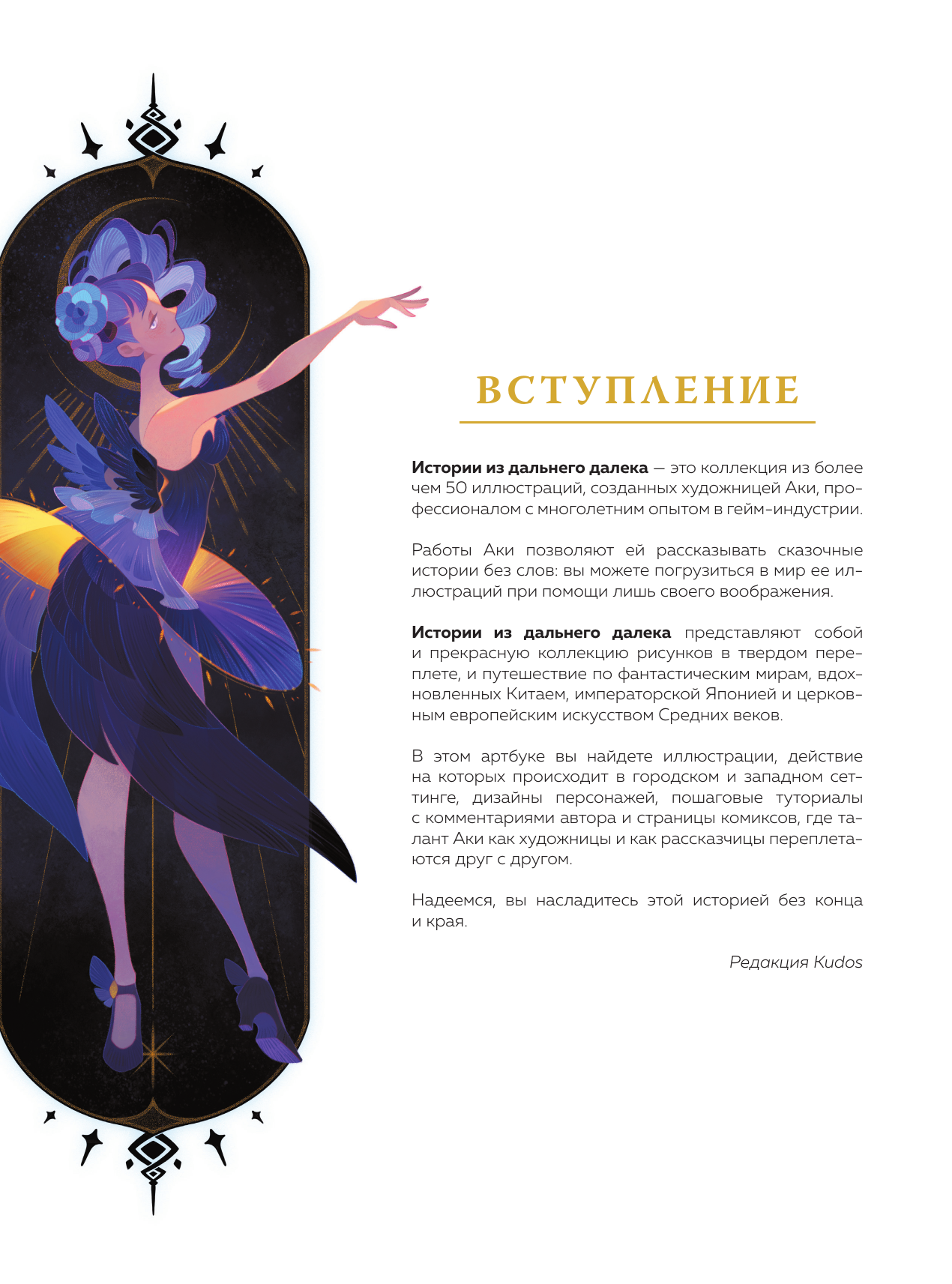 Истории из дальнего далека — это коллекция из более чем 50 иллюстраций, созданных художницей Аки, профессионалом с многолетним опытом в гейм-индустрии. В этом артбуке вы найдете иллюстрации, действие на которых происходит в городском и западном сеттинге, дизайны персонажей, пошаговые туториалы с комментариями автора и страницы комиксов, где талант Аки как художницы и как рассказчицы переплетаются друг с другом.