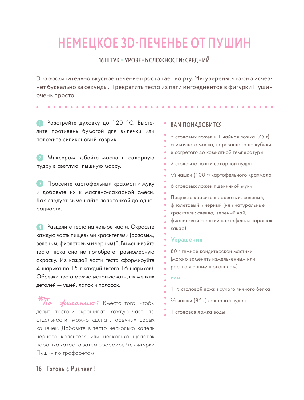 Хрустящее печенье, воздушные пирожные, пикантные закуски и другие вкусные угощения в настоящей кулинарной книге для всех обожателей кошек и поклонников Пушин!