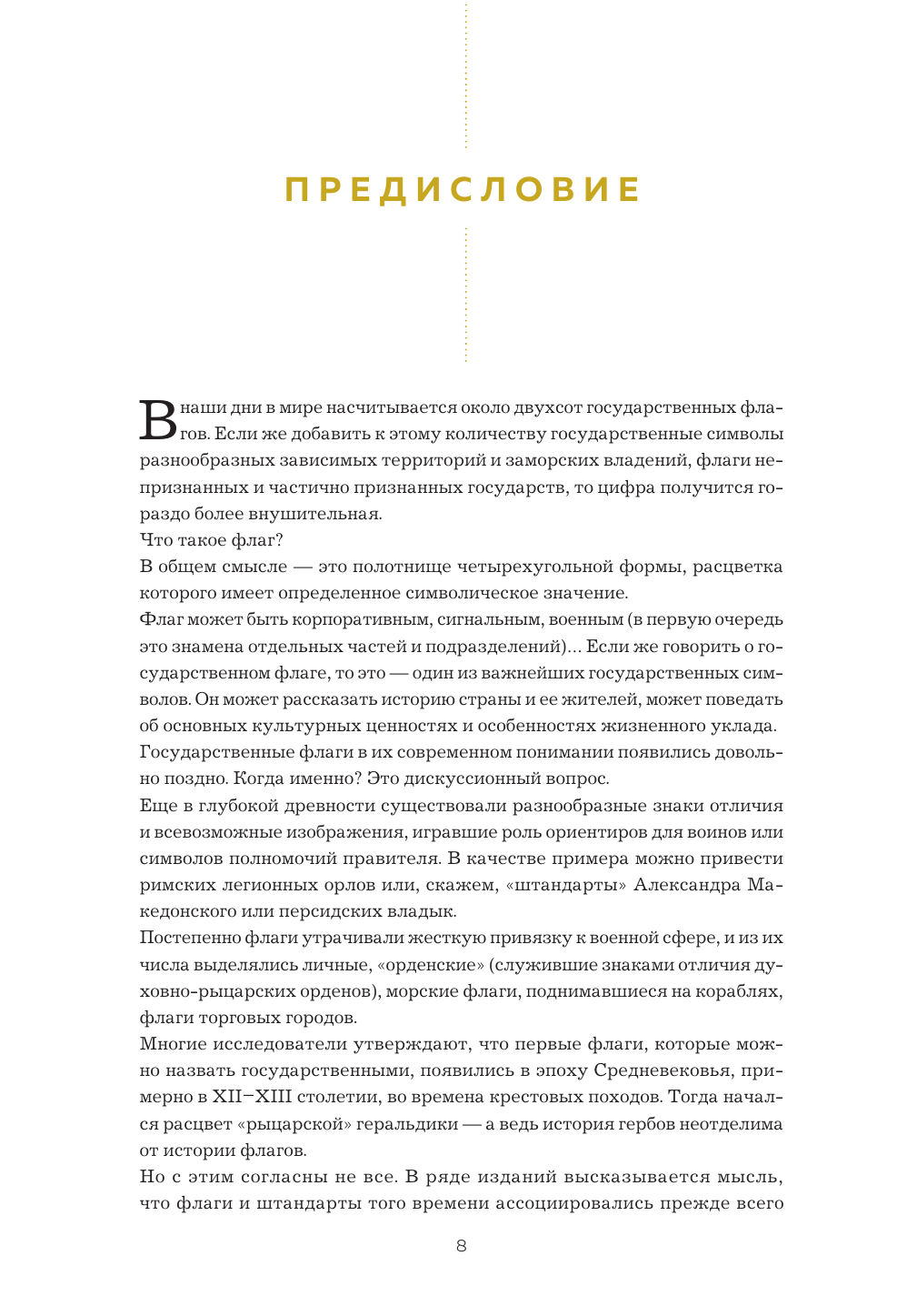 Изучение флагов открывает перед нами удивительный мир. За каждым государственным символом стоит долгая история: иногда — трагичная, иногда — романтическая, но никогда не скучная. Книга предлагает познакомиться с историей современных государственных флагов. Как они появились? Что означают изображения, которые они несут на себе? Как отражались на них государственные перевороты и политические потрясения?