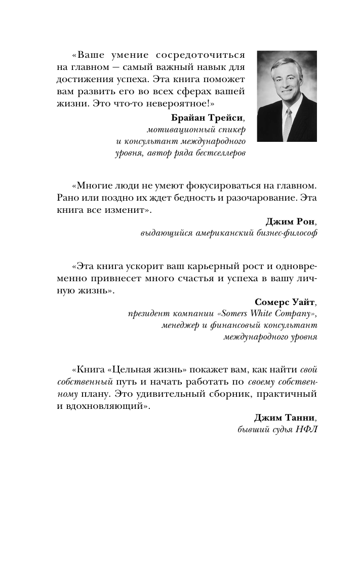 «Книга "Цельная жизнь" покажет вам, как найти свой собственный путь и начать работать по своему собственному плану. Это удивительный сборник, практичный и вдохновляющий». — Джим Танни, бывший судья НФЛ