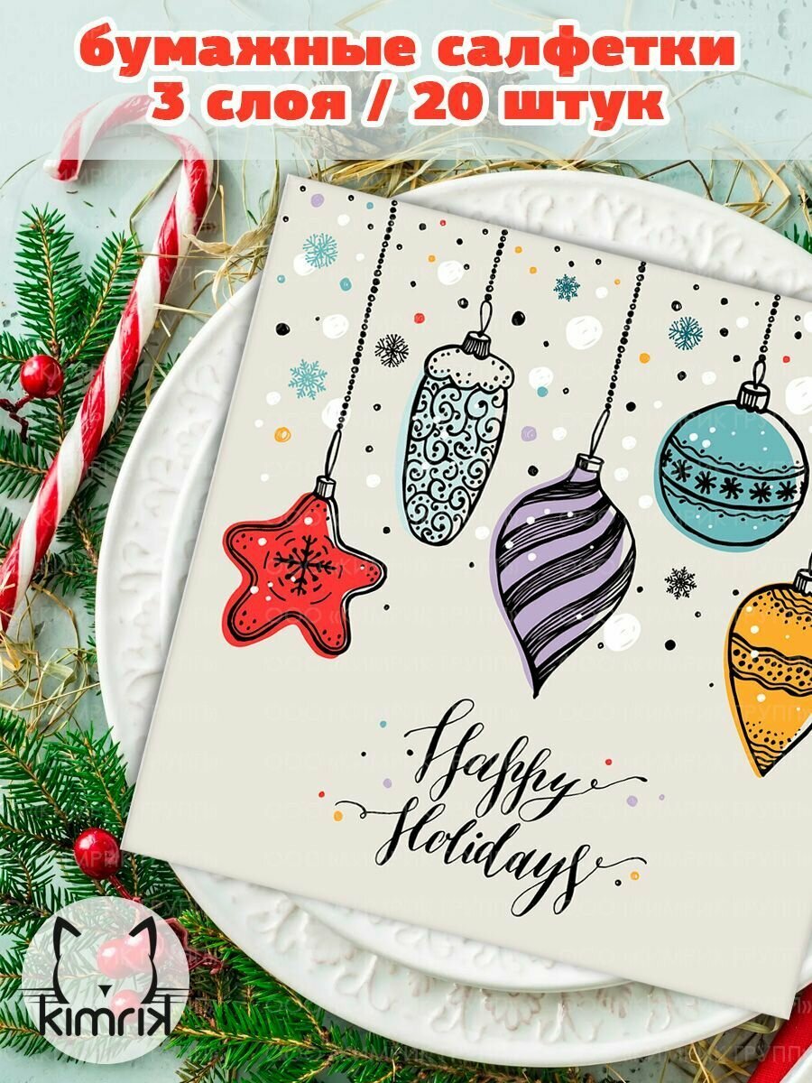 Салфетки трехслойные "Хэппи Холидейс 2024" 33*33 см 3 слоя 20 шт Bulgaree Green