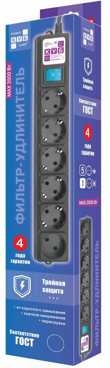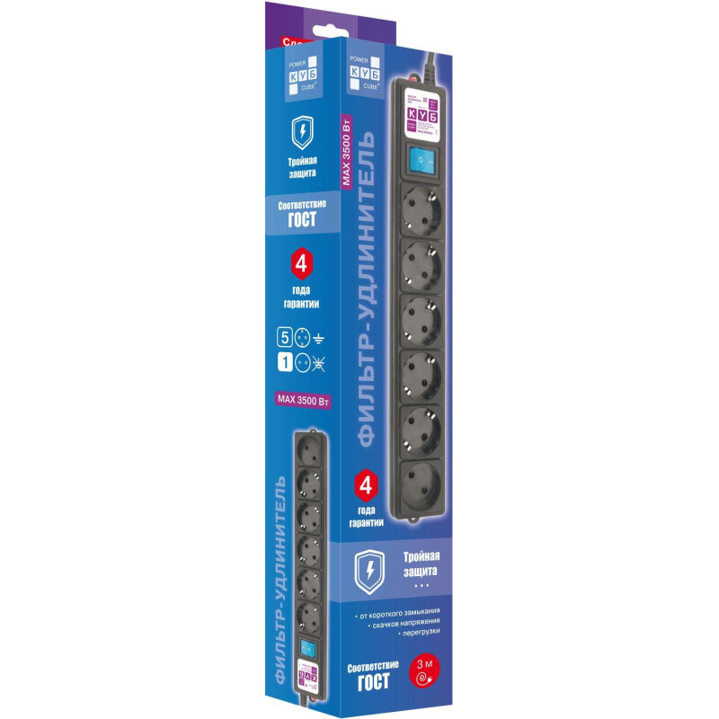 Сетевой фильтр Powercube SPG6-B3M - это устройство, которое обеспечивает надежную защиту вашей электронной техники от скачков напряжения и помех в сети.Сетевой фильтр оснащен 6 розетками, что позволяет одновременно подключать к нему несколько устройств. Максимальная нагрузка составляет 3500 Вт, что делает его подходящим для использования с большинством бытовых приборов.Длина шнура составляет 3 метра, что обеспечивает удобство использования и позволяет разместить устройства на оптимальном расстоянии от источника питания.Бренд Power Cube зарекомендовал себя на рынке как производитель качественных и надежных сетевых фильтров. Выбирая Powercube SPG6-B3M, вы получаете продукт, который обеспечит безопасность и стабильную работу вашей техники.