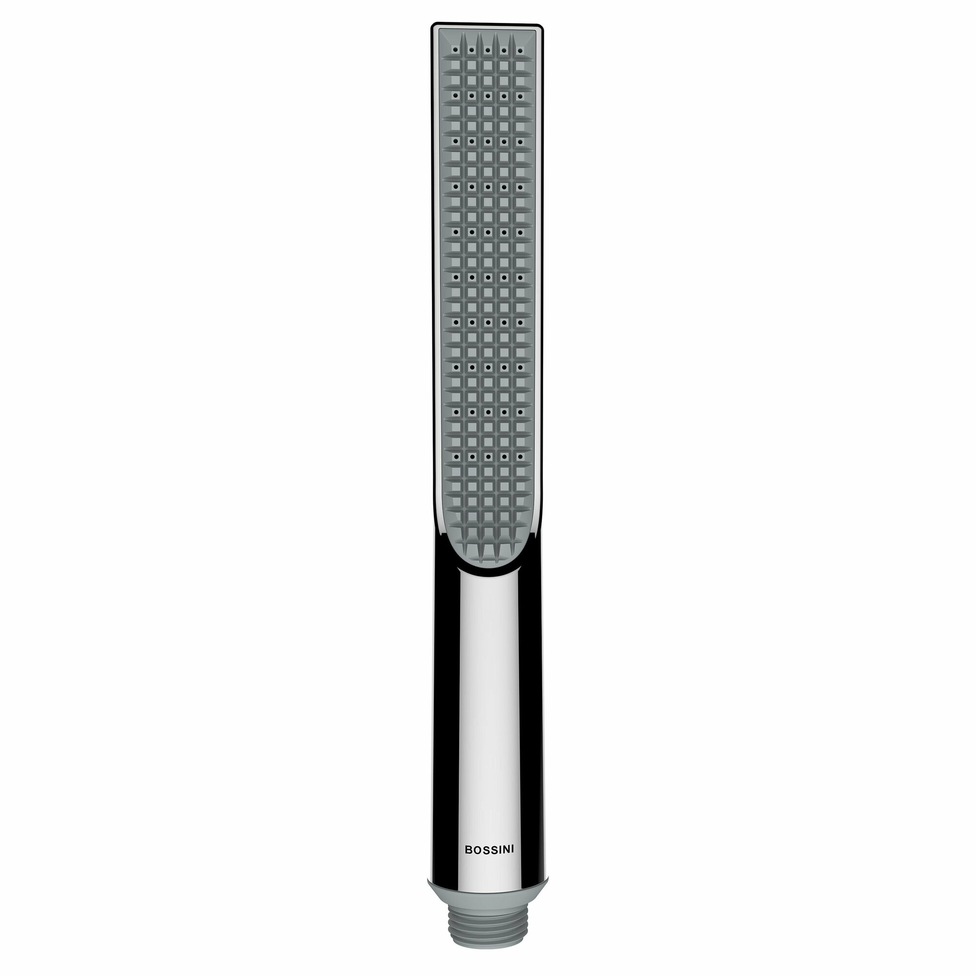 Душевой комплект Bossini Apice с душем-палочкой, держателем, штангой и шлангом, хром (DA5061-N.030). Ручной душпалочка APICE SLIM 29 мм x 29 мм х 231 мм. Материал: ABS пластик. 1 тип струи: дождевая струя. Расход воды: 5 л/мин. С аэратором из термопластичной резины. Настенная штанга 900 мм, O 20 мм. Материал штанги: латунь. Верхний настенный крепеж регулируемый по высоте. Шланг Cromolux 1500 мм. Материал шланга: ПВХ. Функция EasyClean для легкого удаления известкового налета.