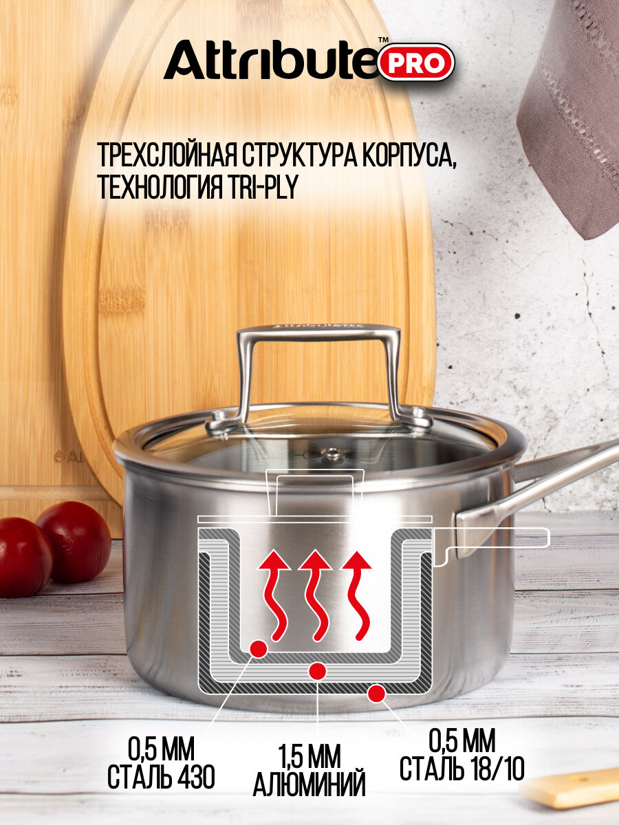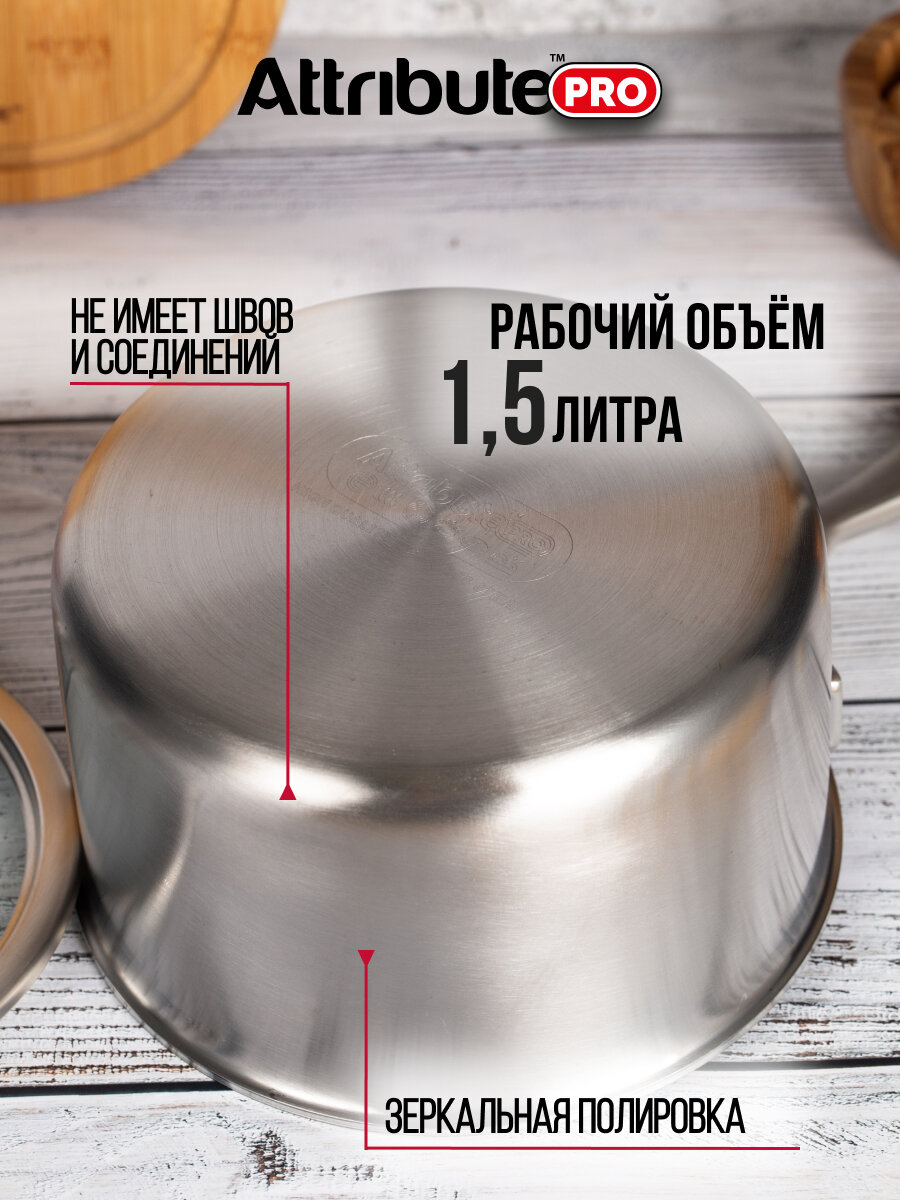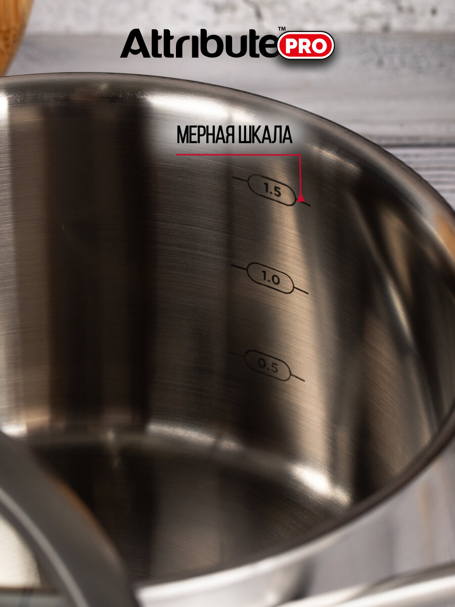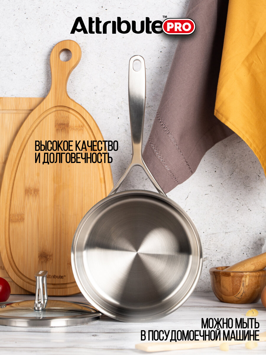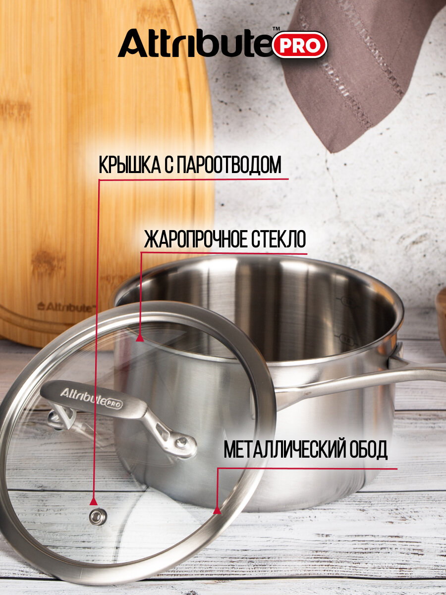 ковш ATTRIBUTE PRO Chef`s Select 16л 18см нерж.сталь стекл. крышка индукция (APS160)