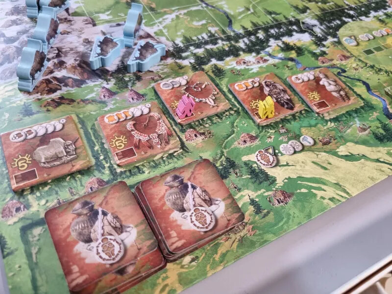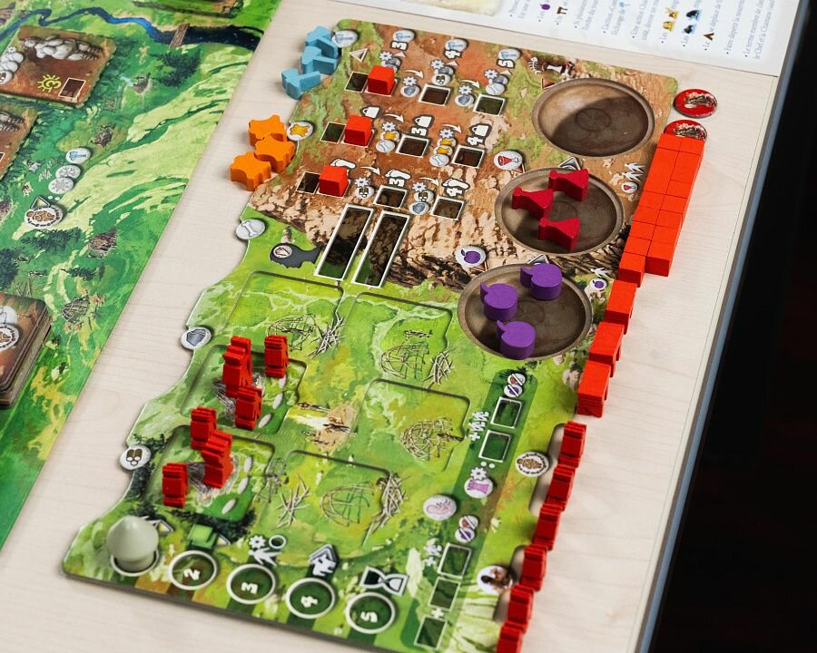 В настольной игре Doggerland каждый игрок возглавляет племя с 1 вождём, 1 шаманом и 4 рабочими. Его цель состоит в том, чтобы в течение нескольких раундов набрать максимальное количество победных очков, чтобы оставить свой след в истории. Существует множество возможностей для получения ПО: увеличение численности клана, изготовление различных изделий, роспись фресок, возведение храмов и так далее.Вся игра происходит на игровом поле, состоящем из тайлов, символизирующих области (поляна, охотничьи угодья, лес, шахта и другие), каждый из которых предлагает разнообразные ресурсы. Игровое поле будет постепенно увеличиваться, за счёт выкладывания новых тайлов. Поэтому многим это может напомнить классический «Каркассон». Каждый раз вы будете развивать своё племя на совершенно уникальной территории.Для всех любителей комплексных игр.Doggerland состоит из 8 раундов, каждый из которых делится на 5 фаз.Фаза программирования действий. Действия позволяют игрокам: построить жилище, создать предмет, увеличение численности племени, охота на крупную дичь, создание фрески, улучшение способностей, управление шаманом.Фаза открытия новых тайлов, то есть исследование новых территорий;Фаза выполнение действий. Все игроки по очереди выполнят запрограммированные ранее действия. К слову, не забудьте покормить всех членов своего племени;Фаза миграции животных. Да, по игровому полю будут перемещаться животные, которые рано или поздно могут стать вашей добычей;Фаза очистки и подготовка к следующему раунду.Добавим к различным игровым механикам небольшие тонкости вроде управления сезонами. Один ход из двух происходит в холодное время года, что требует от игроков использовать меха для определённых действий на свежем воздухе (сбор ресурсов и так далее). Поэтому вам предстоит постоянно адаптироваться к происходящему в игре.Ещё не забудем про промежуточные цели, которые от партии к партии будут разными. А это источник победных очков.После 8 раундов игроки подсчитывают победные очки и определяют победителя.