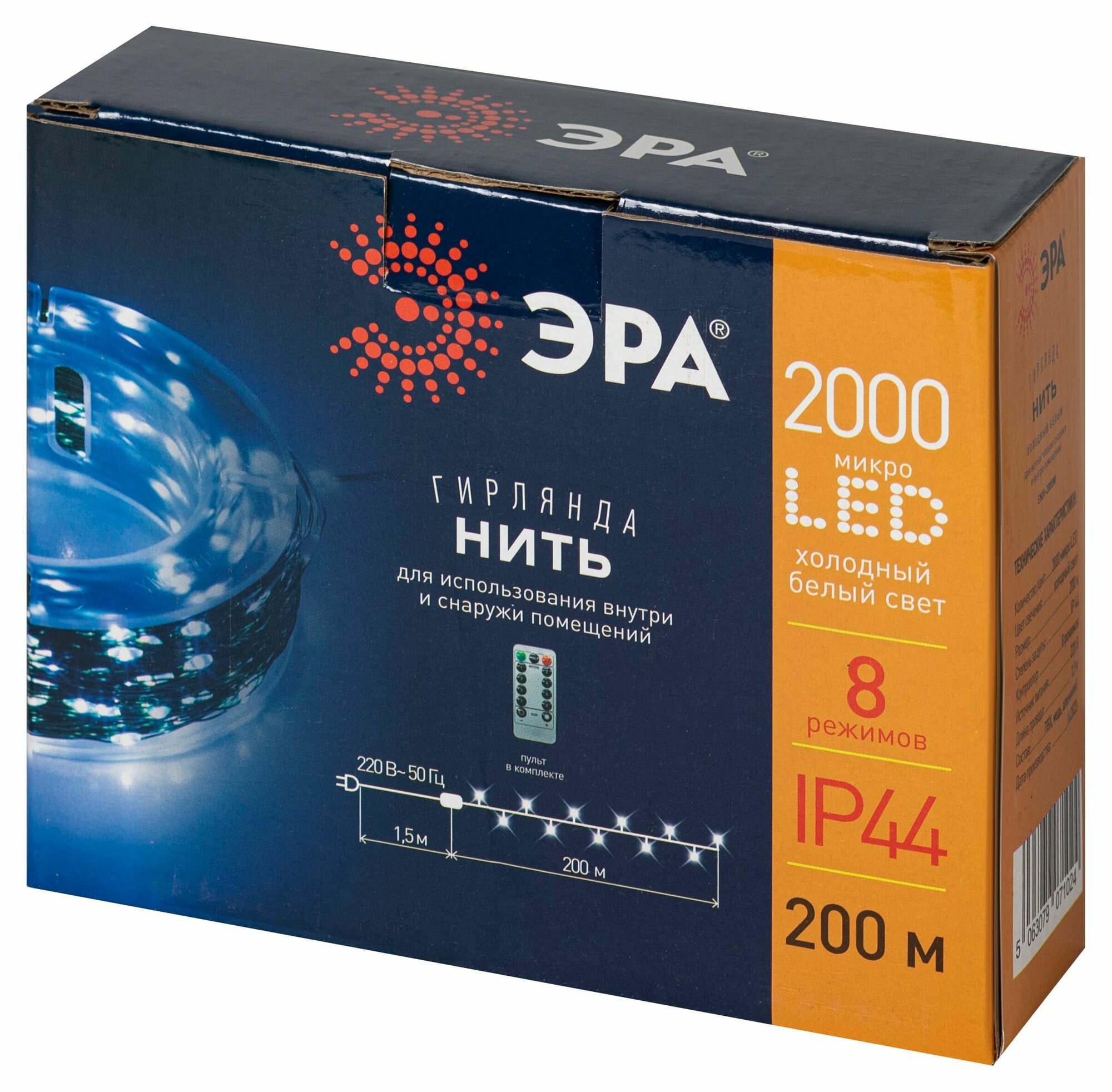 Светодиодная новогодняя гирлянда POWER ENIN-2000W «Нить» производства компании ЭРА представлена в холодном свете и имеет длину 200 метров. На всей протяженности гирлянды расположено 2000 светодиодов, обеспечивающих яркое и насыщенное освещение. Степень защиты гирлянды составляет IP44, что позволяет ее использовать как внутри, так и вне помещений. Гирлянда работает от сети 220В и управляется при помощи контроллера. Эта модель прекрасно подойдет для оформления дома, офиса или другого пространства на новогодние праздники.