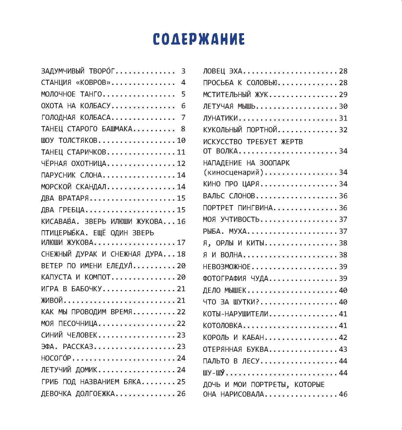 Герои Жукова необычны и эксцентричны, но его стихи всегда добры, сострадательны и полны любви ко всему живому. Они найдут благодарного читателя и среди детей (от самых маленьких до самых больших), и среди родителей. Остаётся добавить, что проиллюстрировал книгу легендарный Капыч (Алексей Капнинский). В иллюстрациях к стихам «Снежный Дурак и Снежная Дура» и «Дочь и мои портреты…» использованы рисунки Лизы Жуковой 2006 года.