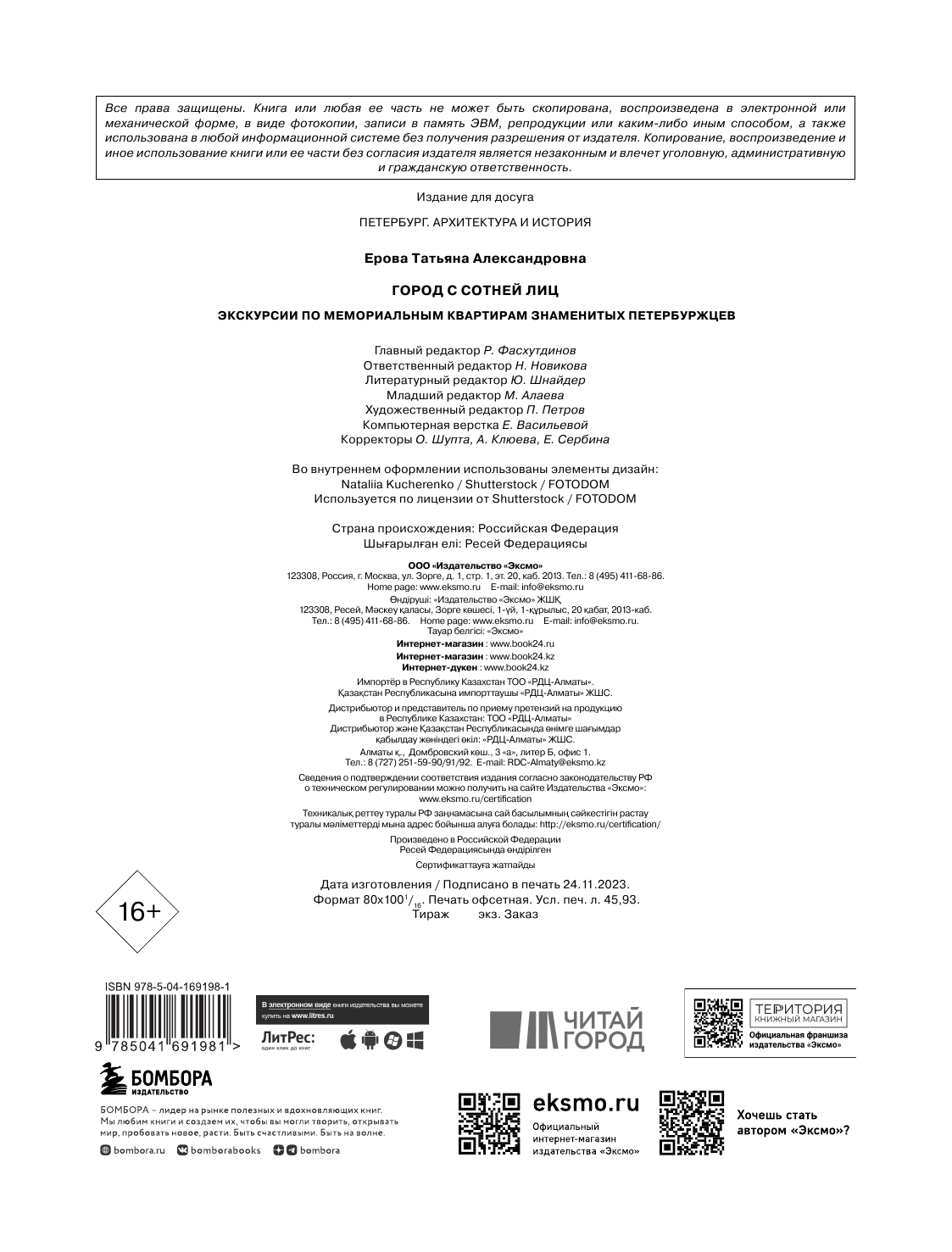 Город с сотней лиц: экскурсии по мемориальным квартирам знаменитых петербуржцев (у.н.) (Татьяна Ерова); Эксмо, БОМБОРА, 2023