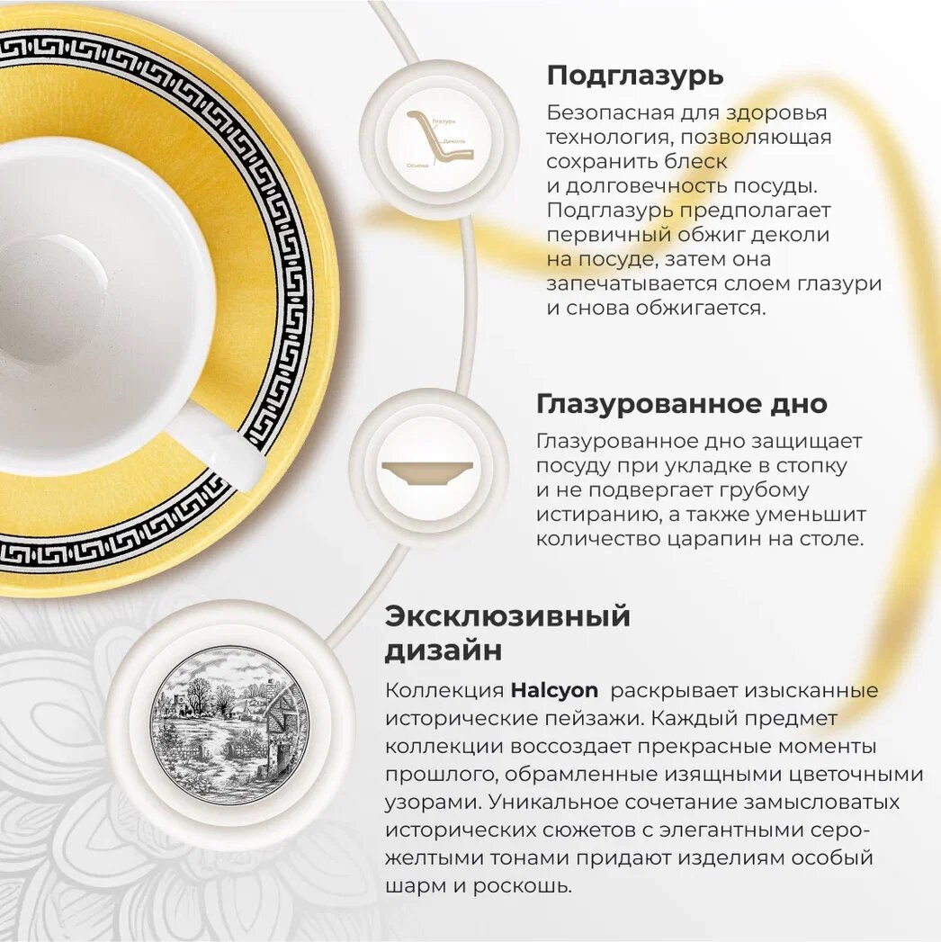 Коллекция Halcyon от Grace Tudor - стильный фаянс с изысканными историческими пейзажами и цветочными узорами. Она переносит нас в мир прошлого, добавляя шарм и роскошь. Уникальное сочетание исторических сюжетов с серо-желтыми тонами придает коллекции особый вид. Каждый предмет внимательно декорирован и создан мастерами своего дела, чтобы подчеркнуть красоту пейзажей. Флористические узоры придают изысканность и добавляют акценты к дизайну. Halcyon - идеальный выбор для ценителей истории и изысканного стиля. Эти изящные фаянсовые изделия прекрасно украсят ваш интерьер, стол и будут прекрасным подарком.