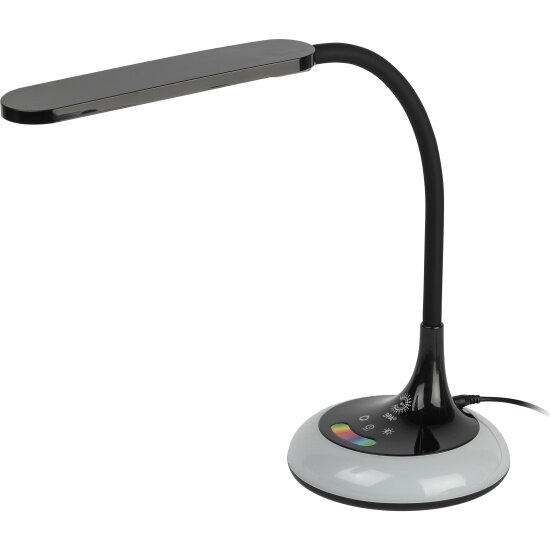 | Прочие особенности и свойства | Настольный светильник со светодиодами (LED) в качестве источников света, 10 Вт. Изменяемая цветовая температура: 3000К, 4500К, 6000К. Сенсорное управление. Плавный диммер. LED ночник на основании с независимым сенсорным переключателем, с выбором режимов свечения. Светильник сохраняет выбранные настройки при включении-выключении. Гибкая стойка позволяет выбирать наиболее комфортное направление света. |