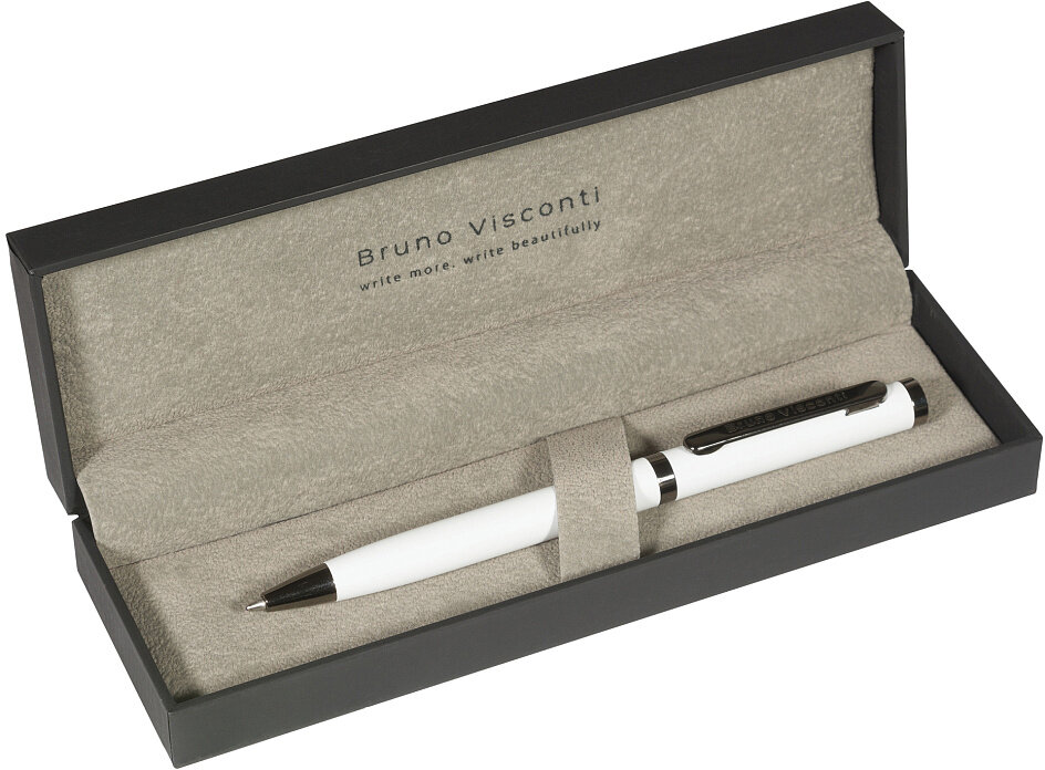 Шариковая металлическая ручка из коллекции «FIRENZE» от Bruno Visconti - бизнес-аксессуар, с которым вы всегда будете чувствовать себя уверенно и комфортно. Лаконичный дизайн, строгость формы, прочный металлический корпус цвета белый, подчеркнут статус владельца ручки. Ручка автоматическая, с легким поворотным механизмом подачи стержня. Надежный пишущий узел d 1,0 мм (от швейцарского производителя Premec) гарантирует высокое качество так же, как и пигментные чернила Dokumental (Германия). Благодаря им писать ручкой «FIRENZE» одно удовольствие – она мягко скользит по поверхности бумаги, оставляя ровную, четкую линию.