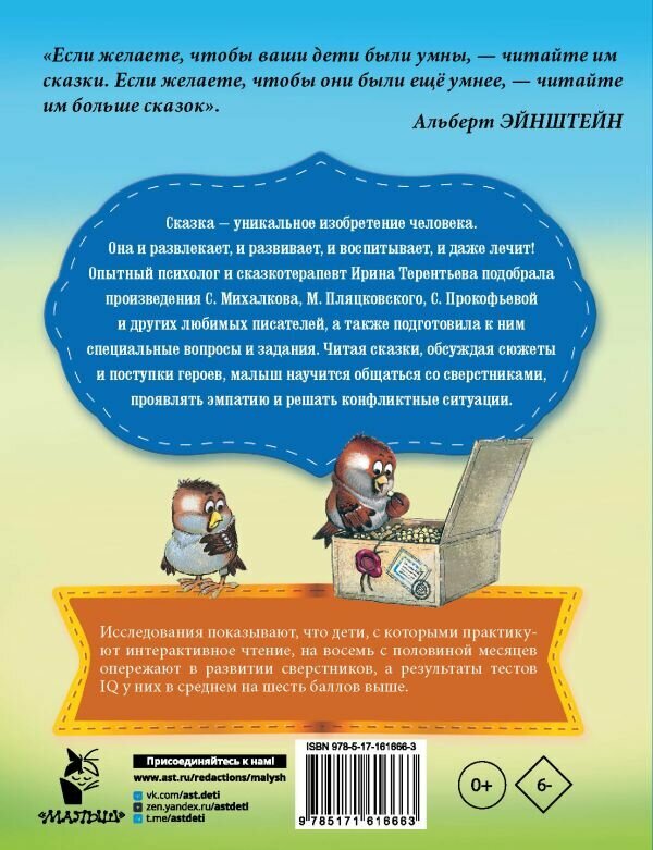 Сказка — уникальное изобретение человека. Она и развлекает, и развивает, и воспитывает, и даже лечит! В этой книге собраны сказки из золотого фонда мировой литературы, которые научат малыша общаться со сверстниками, дорожить дружбой, цивилизованно решать конфликтные ситуации. Подсказки и вопросы опытного сказкотерапевта Ирины Терентьевой — первая психологическая помощь для решения самых важных воспитательных проблем. Для дошкольного возраста.