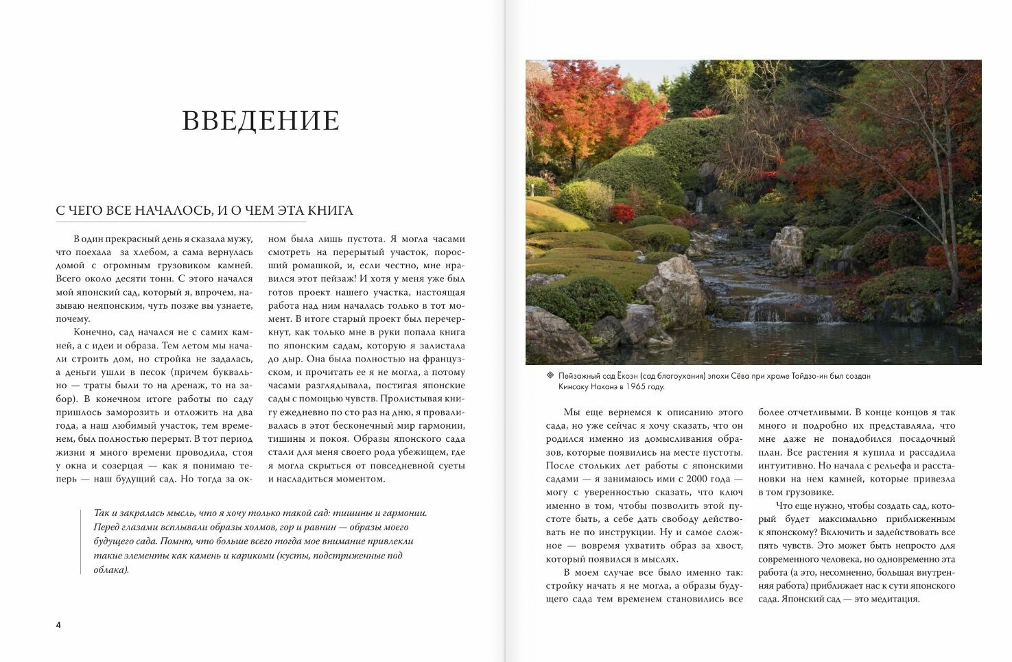 Эта книга с одной стороны полна практических советов и наработок, которые помогут вам на философском пути создания сада на японский лад. С другой стороны она постоянно возвращает нас к чему-то забытому или даже заблокированному обществом — чувственному познанию, интуиции, свободе творчества и мало кому сегодня доступным богатствам — медлительности и осознанности. Японский сад — это медитация. Погрузившись в нее, мы возвращаемся к себе.