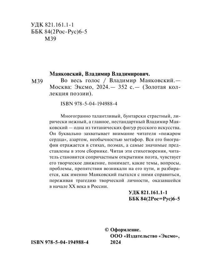 Книга: Во весь голос (Маяковский Владимир Владимирович); ООО "Издательство "Эксмо", 2023