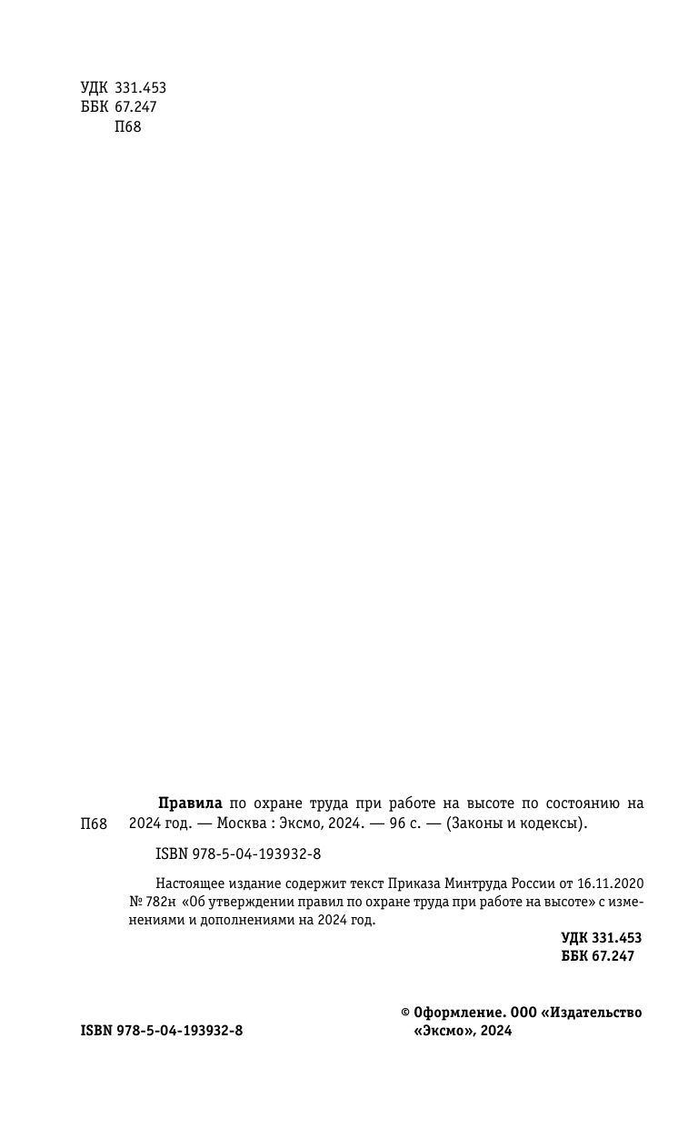 Правила по охране труда при работе на высоте по состоянию на 2024 год (Верещагин В.В.); ООО "Издательство "Эксмо", 2023
