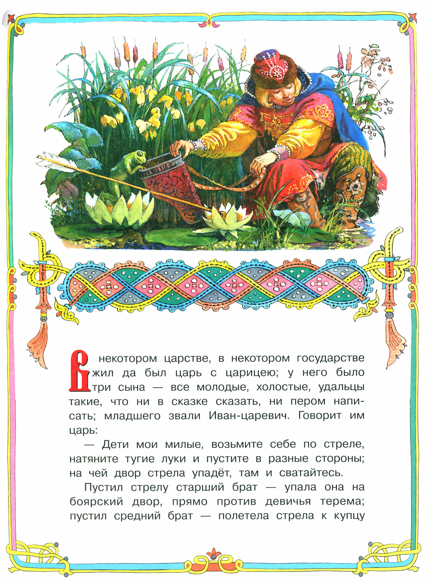 Русская народная сказка “Царевна-лягушка” в обработке Александра Афанасьева с иллюстрациями одного из лучших художников-графиков советского периода Павла Григорьевича Пономаренко. Его работы можно смело назвать шедеврами книжной графики. За свои иллюстрации П. Г. Пономаренко не раз был удостоен медалей на Международных выставках-конкурсах детской книги.