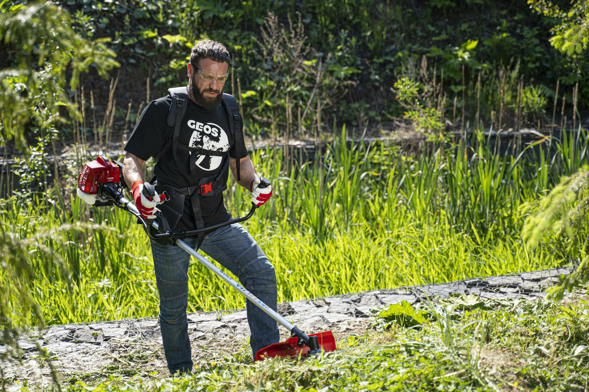 Бензиновый триммер GEOS Max Premium 130 B используется для кошения газона рядом с загородным домом, на даче. Режущий инструмент - автоматическая катушка с леской и трехлопастной стальной нож. Ширина кошения леской 41 см, у ножа захват 25 см. Двухтактный двигатель с облегченным запуском развивает мощность около 1.2 л/с. Ременная оснастка максимально удобная, на два плеча. Все органы управления мотокосой Geos вынесены на велосипедную рукоятку. Вал неразъемный, и это усиливает прочность общей конструкции бензотриммера.