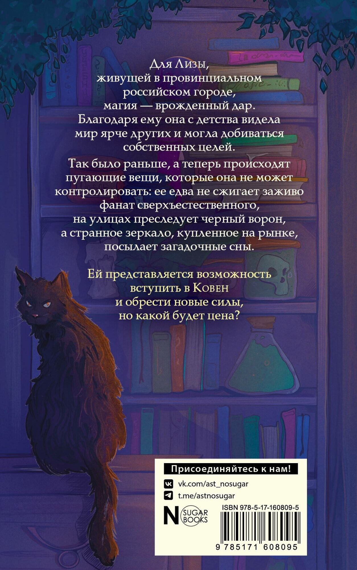 Для Лизы, живущей в провинциальном российском городе, магия — врожденный дар. Благодаря ему она с детства видела мир ярче других и могла добиваться собственных целей. Так было раньше, а теперь происходят пугающие вещи, которые она не может контролировать: ее едва не сжигает заживо фанат сверхъестественного, на улицах преследует черный ворон, а странное зеркало, купленное на рынке, посылает странные сны. Ей представляется возможность вступить в Ковен и обрести новые силы, но какой будет цена?