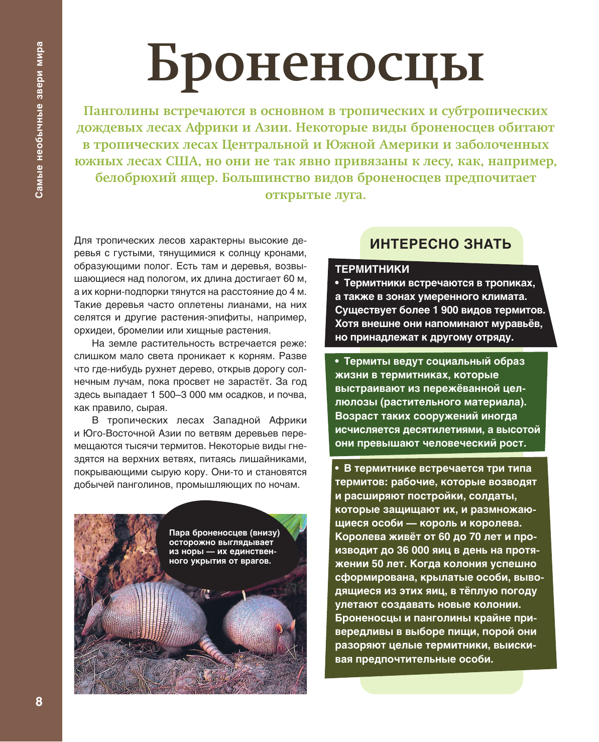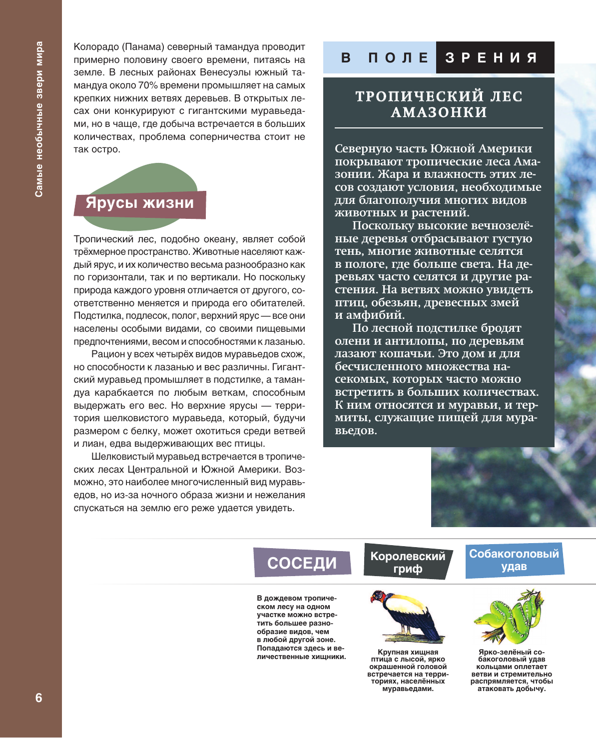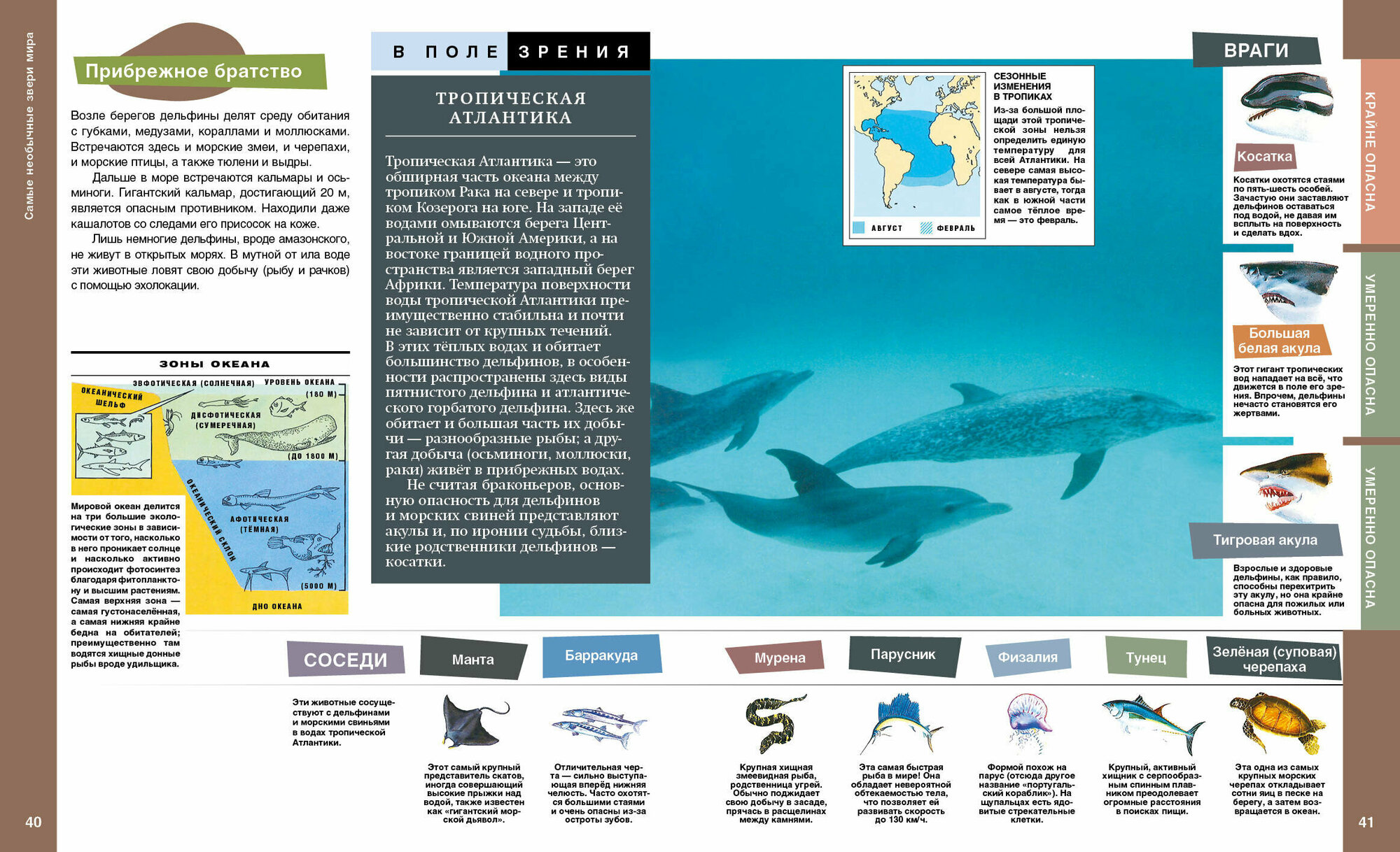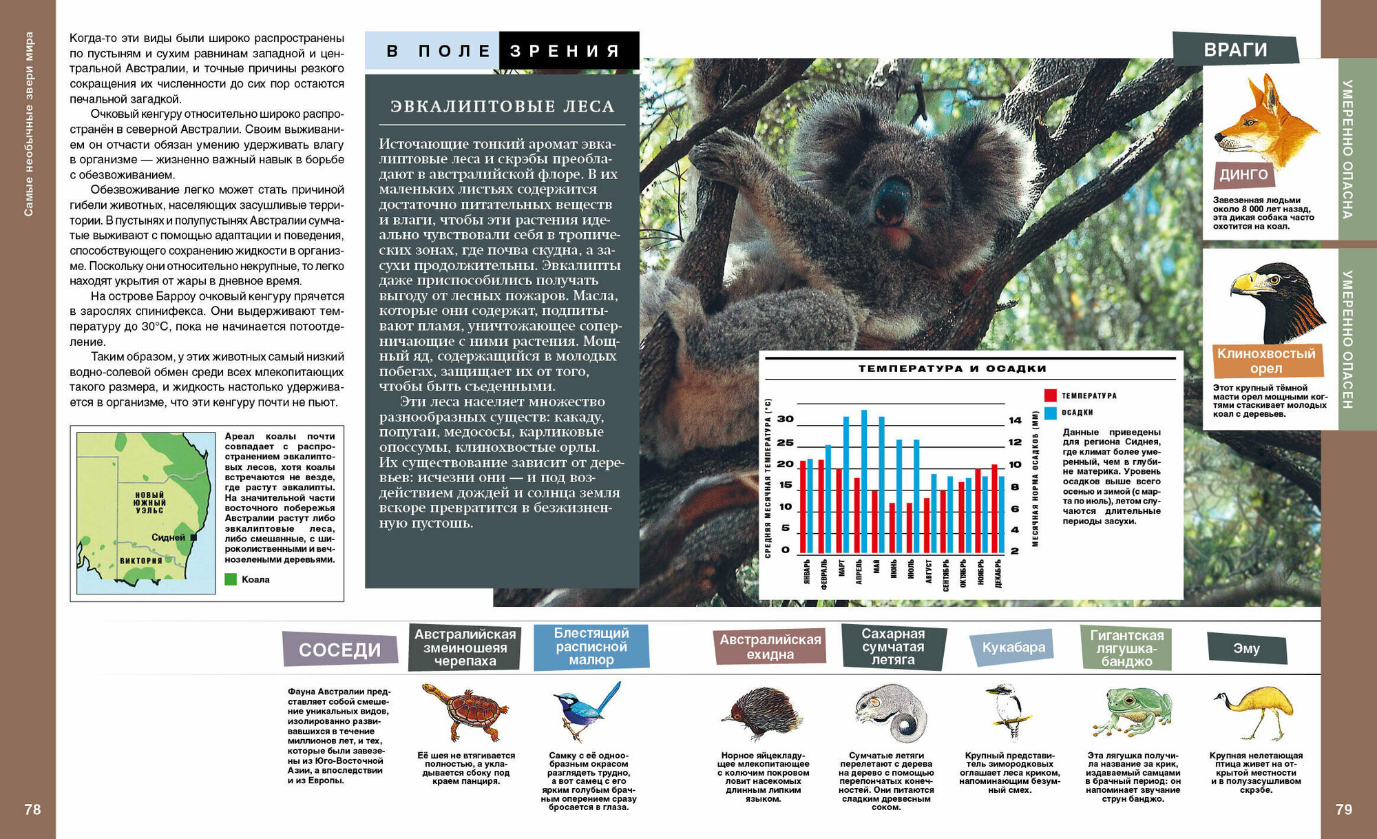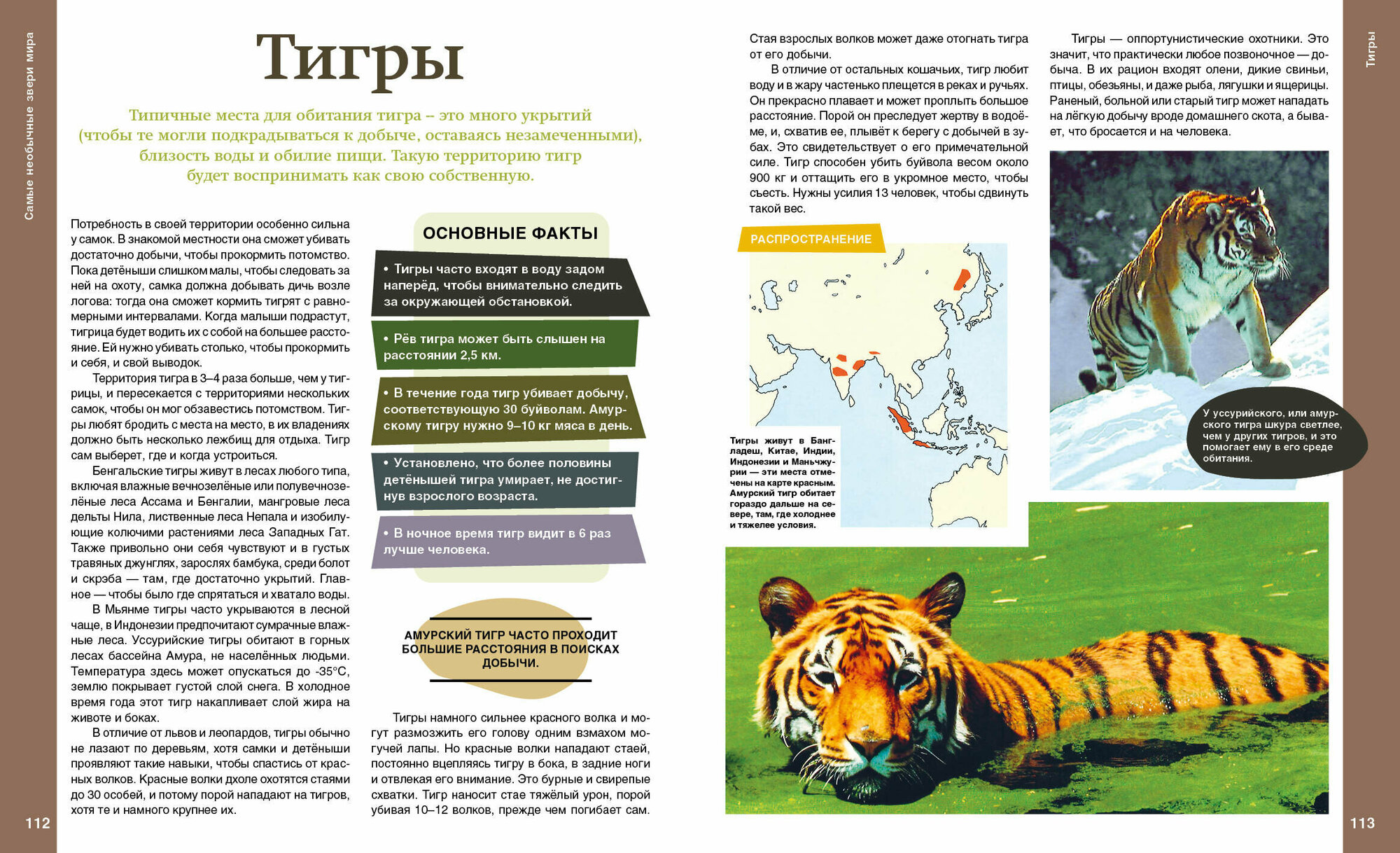 Красочные фотографии и детальные тексты энциклопедии откроют вам секреты разных зверей мира: как они умеют приспосабливаться к местам обитания? Кто для них является безобидным соседом, а кто — естественным врагом? Кому комфортно жить совсем рядом с людьми, а кто процветает вдали от человеческой цивилизации?