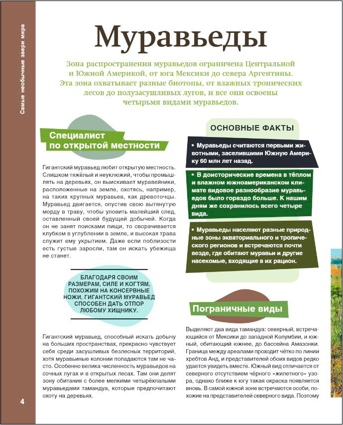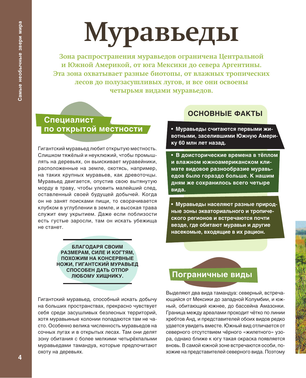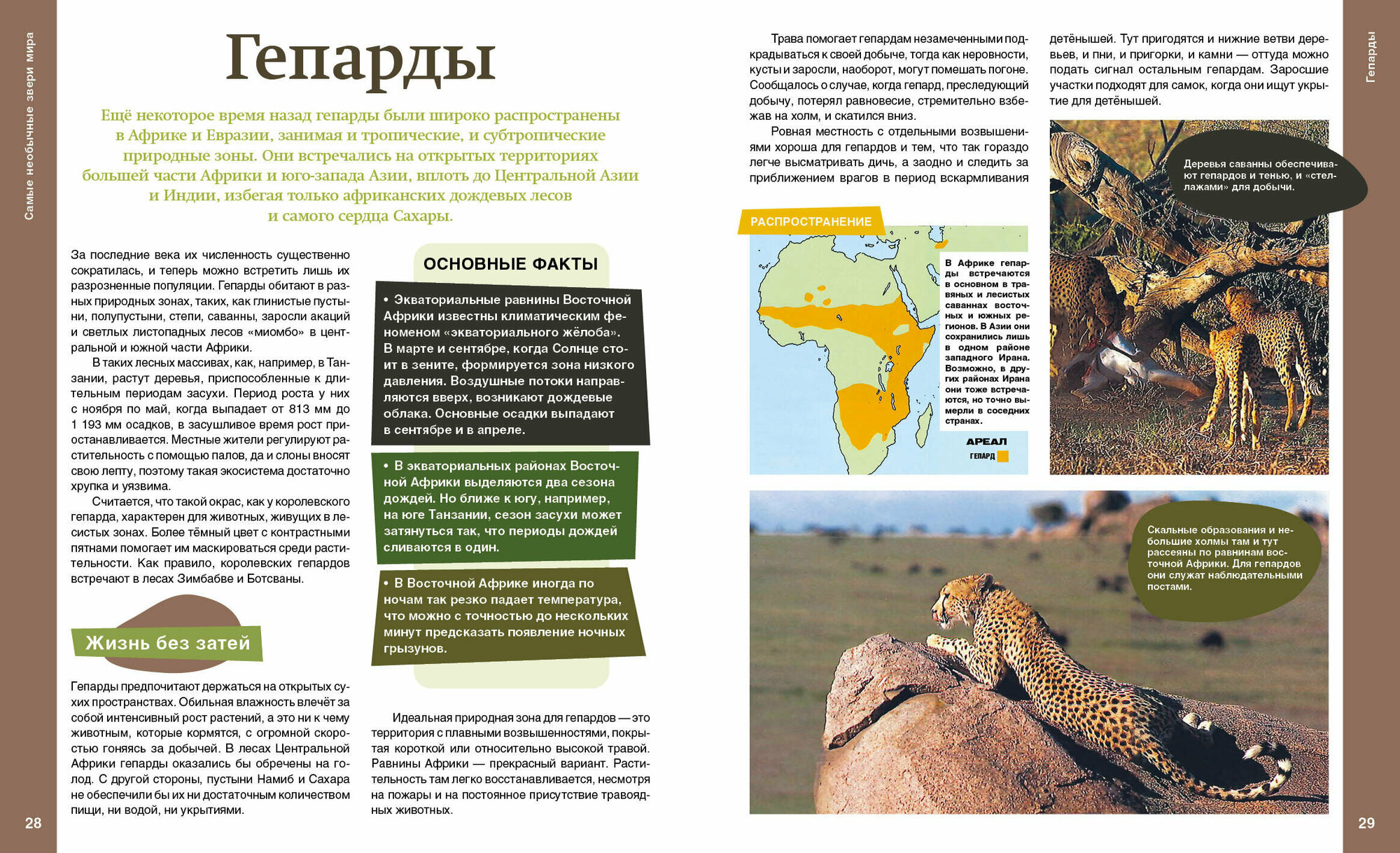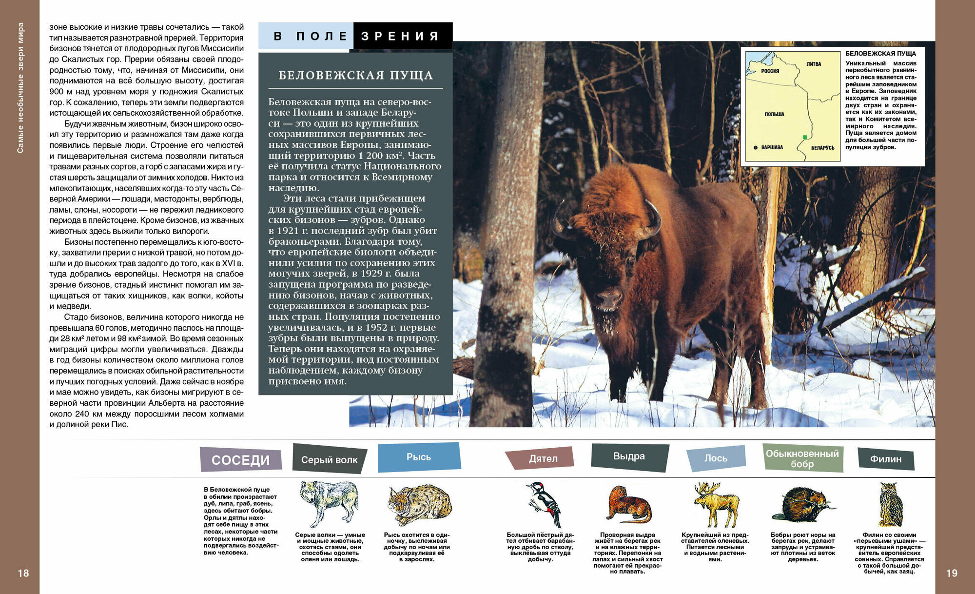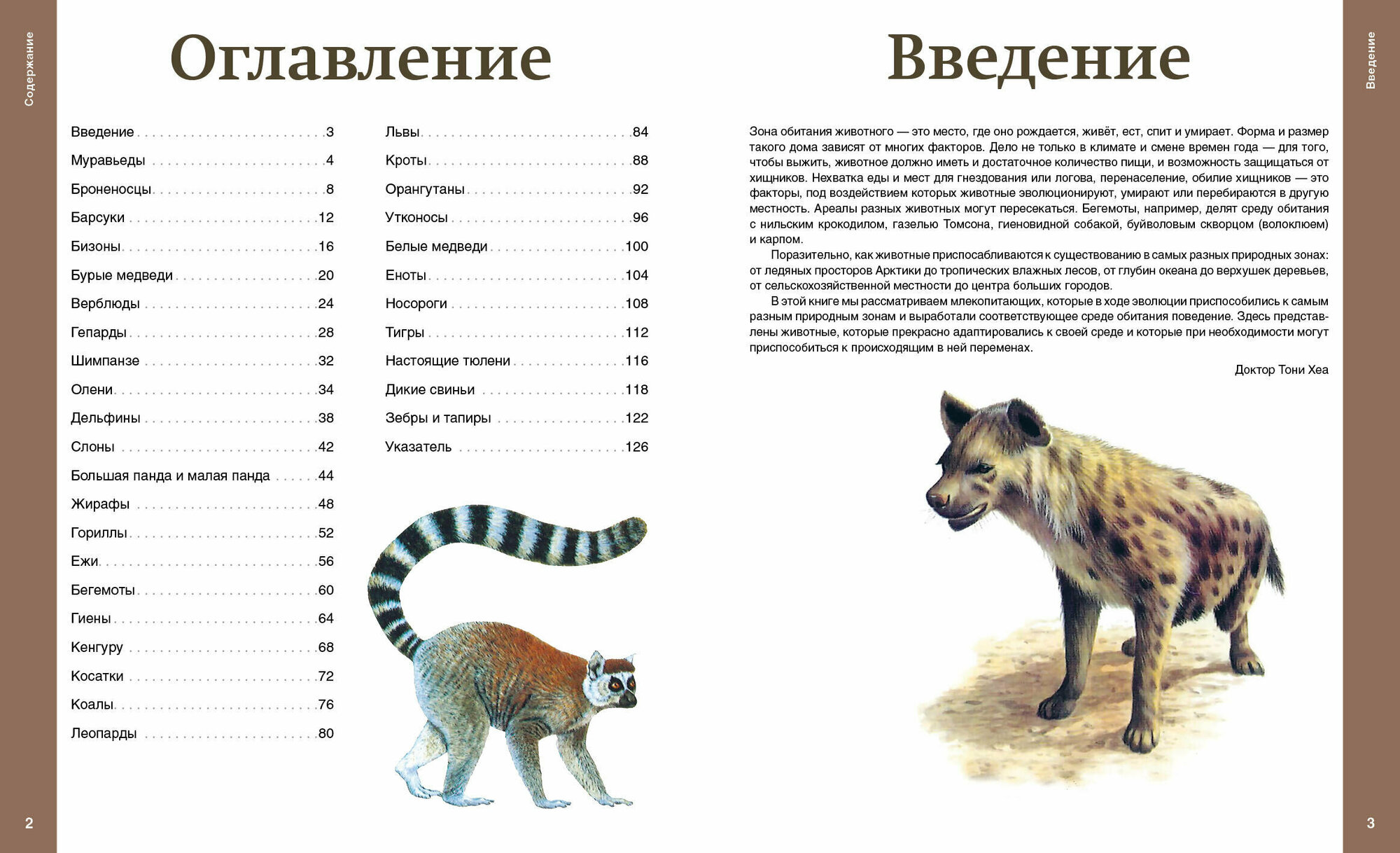 Вы узнаете, в каких ареалах обитает каждое животное, в том числе и на территории России, откроете для себя великолепные природные зоны — от Беловежской пущи до Серенгети. Необычный указатель книги сообщит читателям важную информацию о статусе видов животных согласно данным из Красной книги.