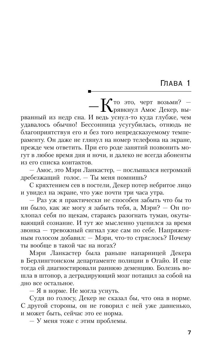 Между тем у самого Декера началась черная полоса. Начальство, недовольное независимым характером Амоса, назначило ему новую напарницу. И еще, недавняя трагедия вернула память Декера в прошлое, которое он мучительно хочет забыть – и не может. Его психика начинает сбоить. А права на ошибку Декер не имеет: слишком опасным делом он занялся…