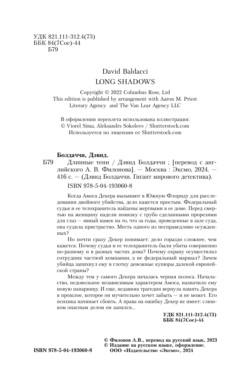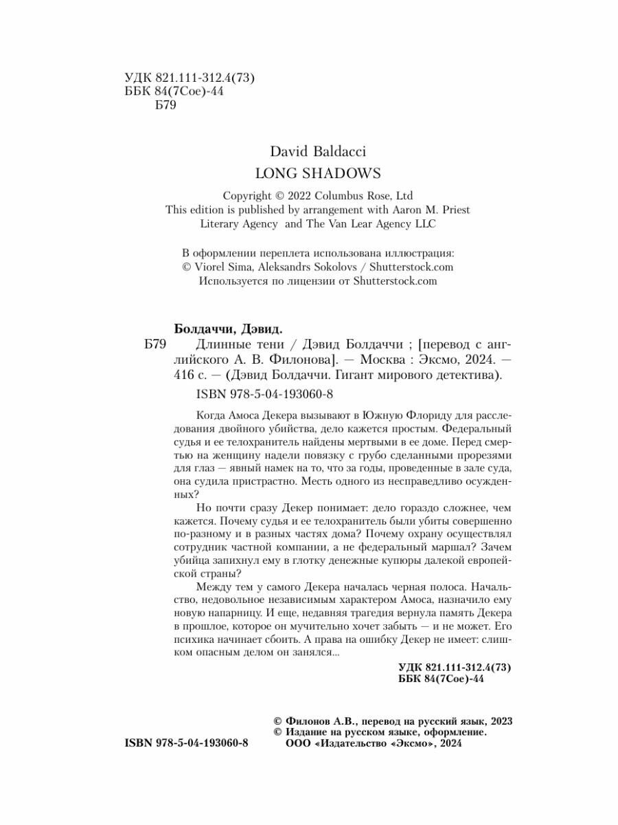 Книга: Длинные тени (Дэвид Болдаччи); Эксмо, Редакция 1, 2024