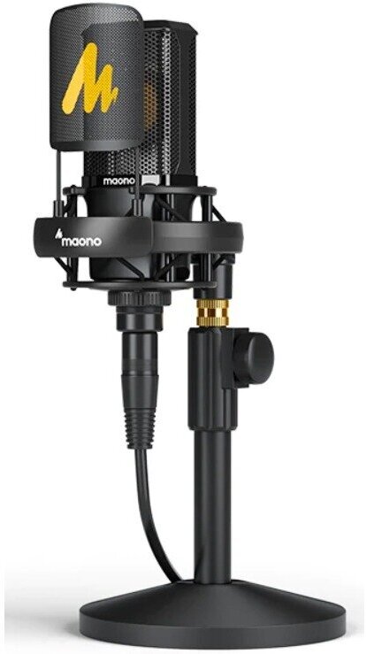 Maono AU-PM500Т микрофон студийный, конденсаторный кардиоидный. Держатель, подставка, поп-фильтр, XLR кабель. Капсюль 34 мм., 20-20000Гц, -35дБ. Макс.