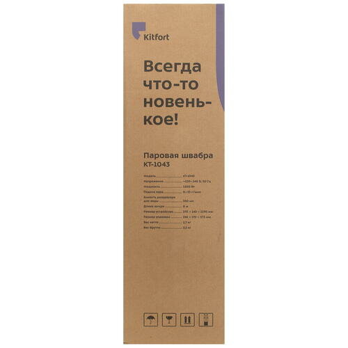 Пароочиститель Kitfort КТ-1043 благодаря созданию интенсивного потока пара удаляет стойкие загрязнения, устраняет неприятные запахи и плесень, дезинфицирует поверхности. Съемный ручной модуль облегчает обработку небольших или труднодоступных зон. С помощью поворотного регулятора можно настраивать интенсивность воздействия. Пароочиститель Kitfort КТ-1043 оснащен баком емкостью 350 мл для наполнения водой. Сетевой кабель длиной 8 м гарантирует комфортную работу в условиях удаленного подключения к розетке. В наборе поставляются комплект сменных насадок разной формы с щетками и без, тряпки для пола и отпаривания, мерный стакан и воронка.