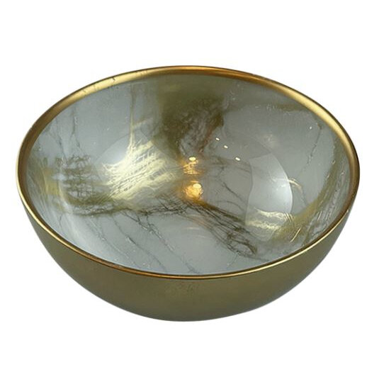 Салатник выполнен в элегантном снежно-белом оттенке с золотистыми прожилками как из драгоценного мрамора внутри, снаружи - золотого цвета.