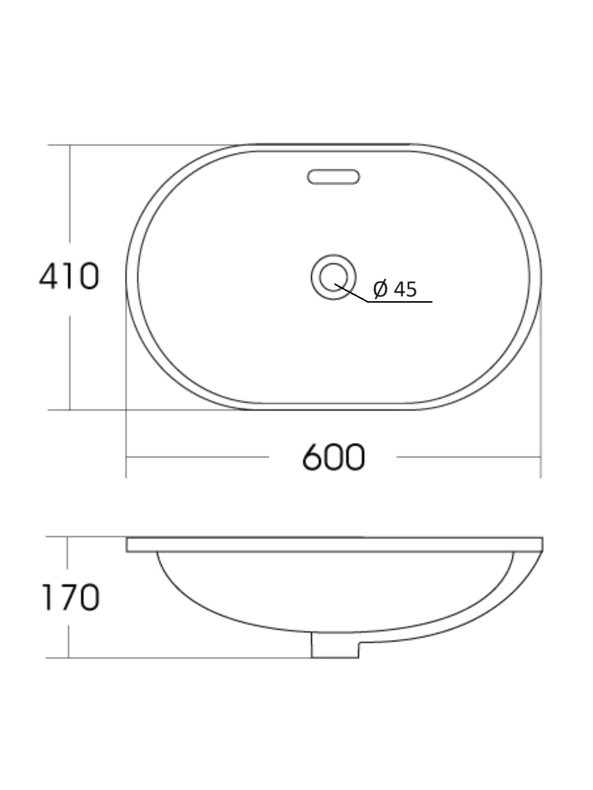 - Размер (ШхВхГ): 600х170х410 мм.