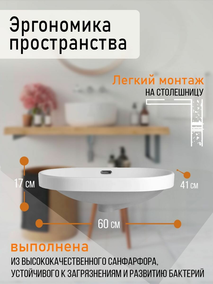- Монтаж: полувстраиваемая, сверху на столешницу.