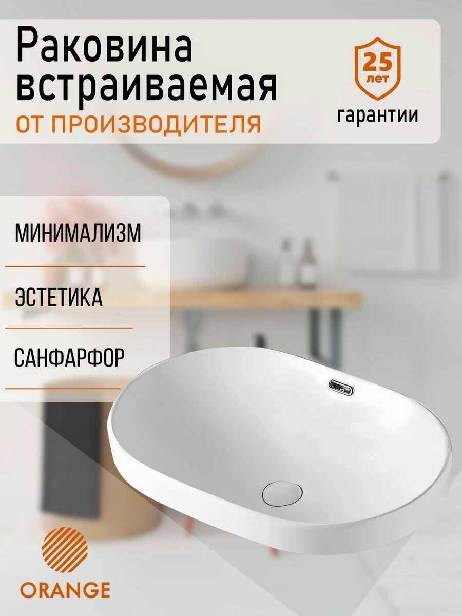 Встраиваемая сверху раковина Orange выполнена в минималистичном дизайне из высококачественного фарфора, который имеет плотную и гладкую поверхность, отсутствие пористости - гарантия сохранения красивой поверхности, устойчивой к различного рода загрязнениям.