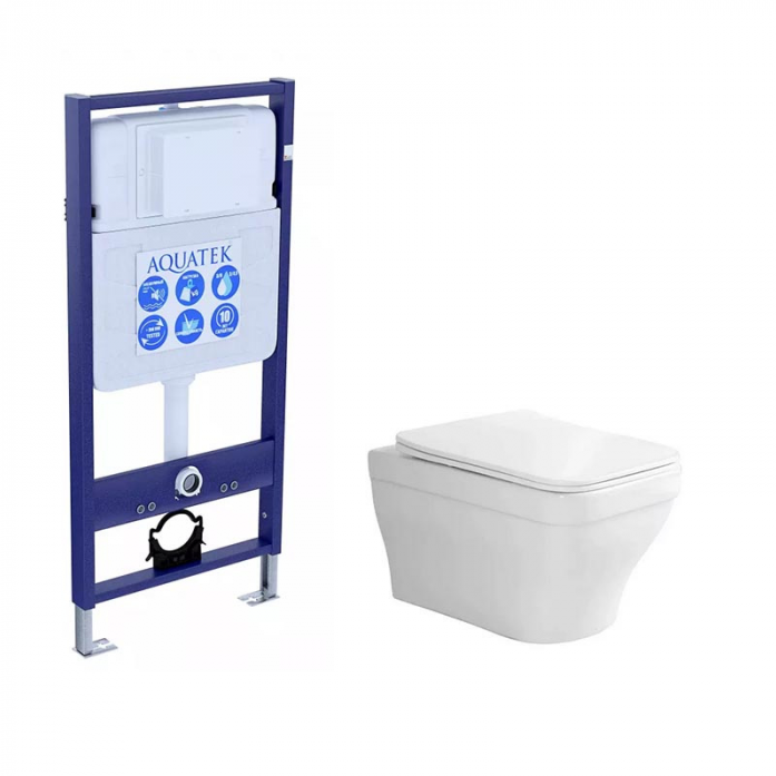 Унитаз Aquatek изготовлен из 100% санитарного фарфора, который сохраняет безупречную белизну на протяжении всего срока службы. Сиденье легко снимается для уборки одним нажатием кнопки. Механизм Soft Close обеспечивает плавное закрытие крышки унитаза. Безободковая конструкция унитаза облегчает уборку.