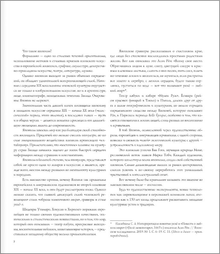 Более двух веков Япония жила в изоляции от внешнего мира, и только в середине XIX века Страна восходящего cолнца была заново открыта для Запада. Началась новая эра в отношениях Японии и стран Европы, и не в последнюю очередь это касалось искусства. Во время Всемирных выставок в Лондоне и Париже павильон Японии, где были представлены гравюры и декоративно-прикладное искусство, произвел настоящую сенсацию. Во второй половине XIX века практически все художники-импрессионисты были очарованы простотой и изяществом японского стиля. Проникновение восточной эстетики в западное восприятие через искусство, прежде всего, изобразительное, изменило парадигму художественного мышления: видеть важное в повседневной жизни — в каплях дождя, облетевшей сакуре, заходящем солнце… Книга «Импрессионизм и Япония. Искусство между Востоком и Западом: история одной страсти» посвящена истории взаимопроникновения культур Востока и Запада, феномену увлечения Японией в странах Европы и Америки начиная с середины XIX века и до наших дней.