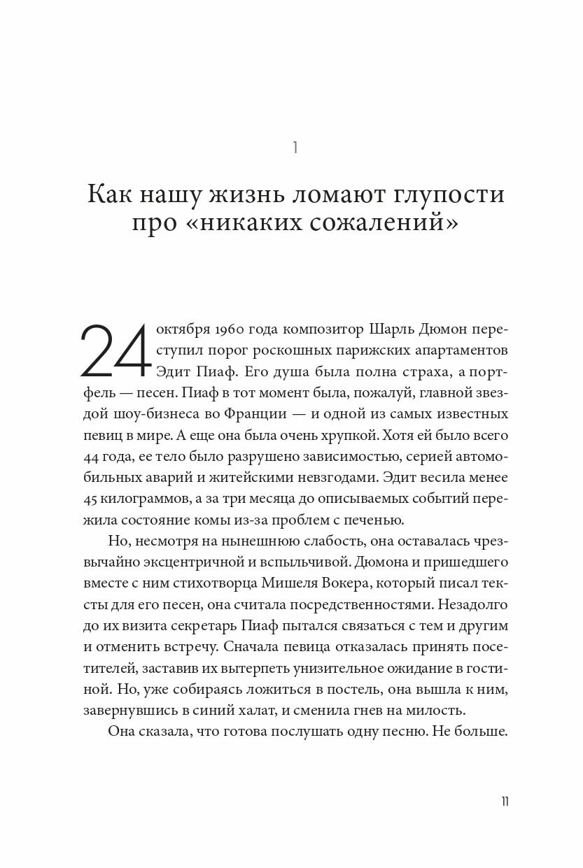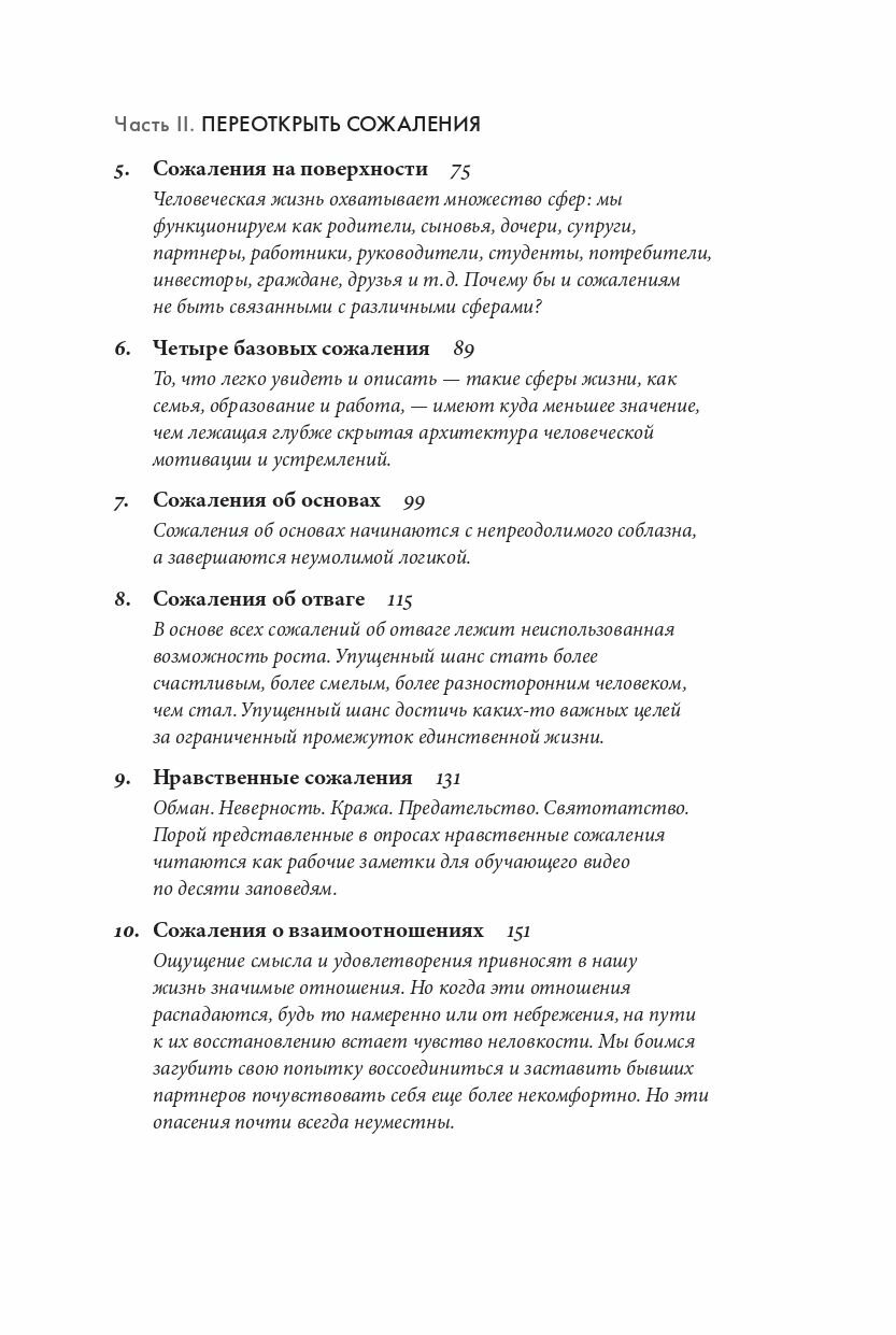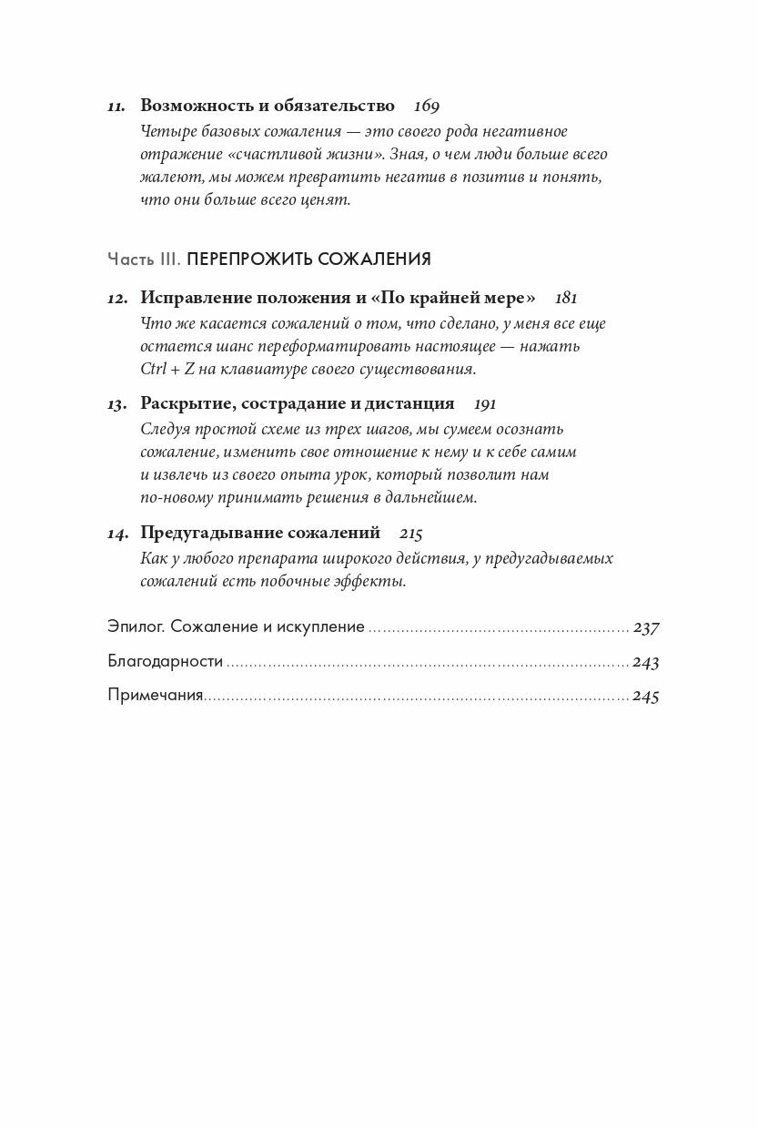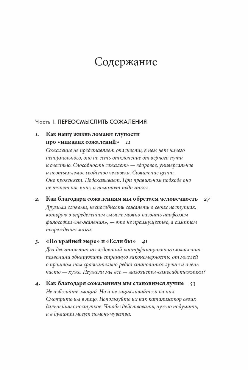 «Жить надо так, чтобы ни о чем не жалеть». Согласны? Многие люди избегают сожалений, и в этом их поддерживает современная культура успеха. Но оправдан ли такой подход? Ведь все мы о чем-то жалеем: о поступках или неосторожно сказанных словах, об ошибках или упущенных возможностях. Автор бестселлера «Драйв» писатель и журналист Дэниел Пинк предлагает переосмыслить и принять это чувство. Опираясь на современные исследования в области нейронаук и социальной психологии, в своей новой книге он развенчивает миф о вреде сожалений и предлагает не отворачиваться от негативного опыта, а научиться извлекать из него уроки, чтобы двигаться вперед.