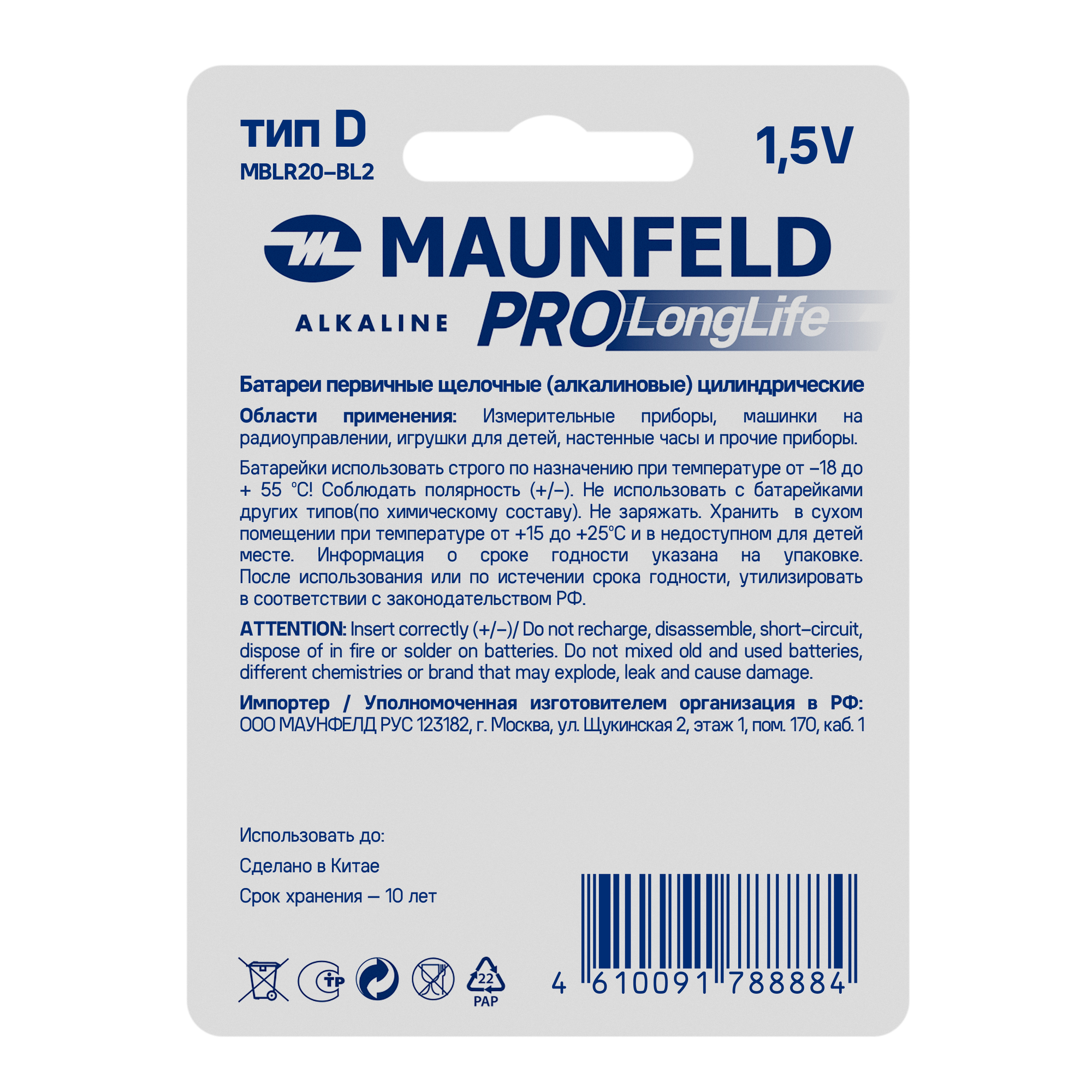 Модель: PRO Long Life Alkaline D(LR20) MBLR20-BL2, 2 шт